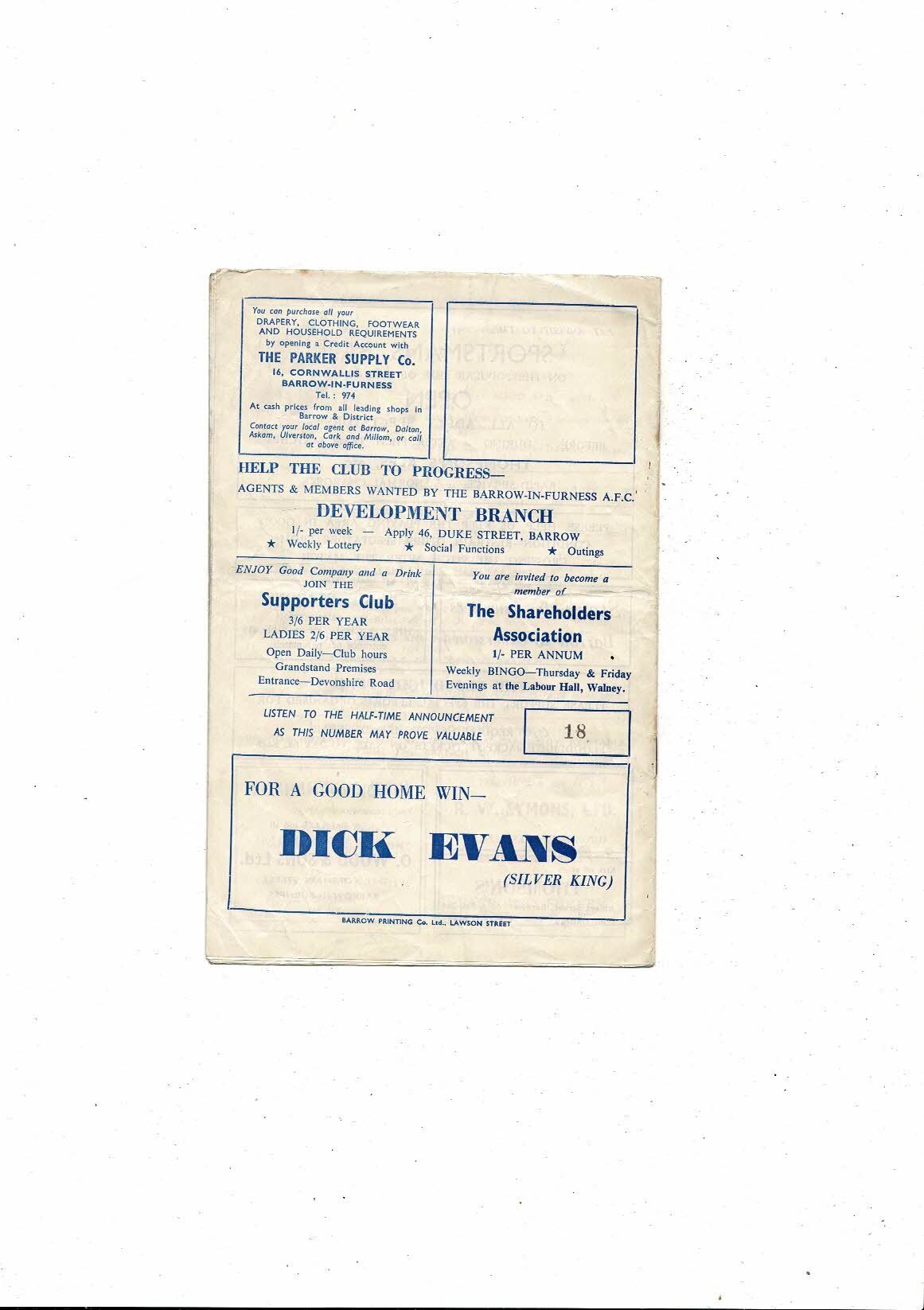 This original Football Programme is creased also has a fold with some staining & staples just starting to rust. No handwriting