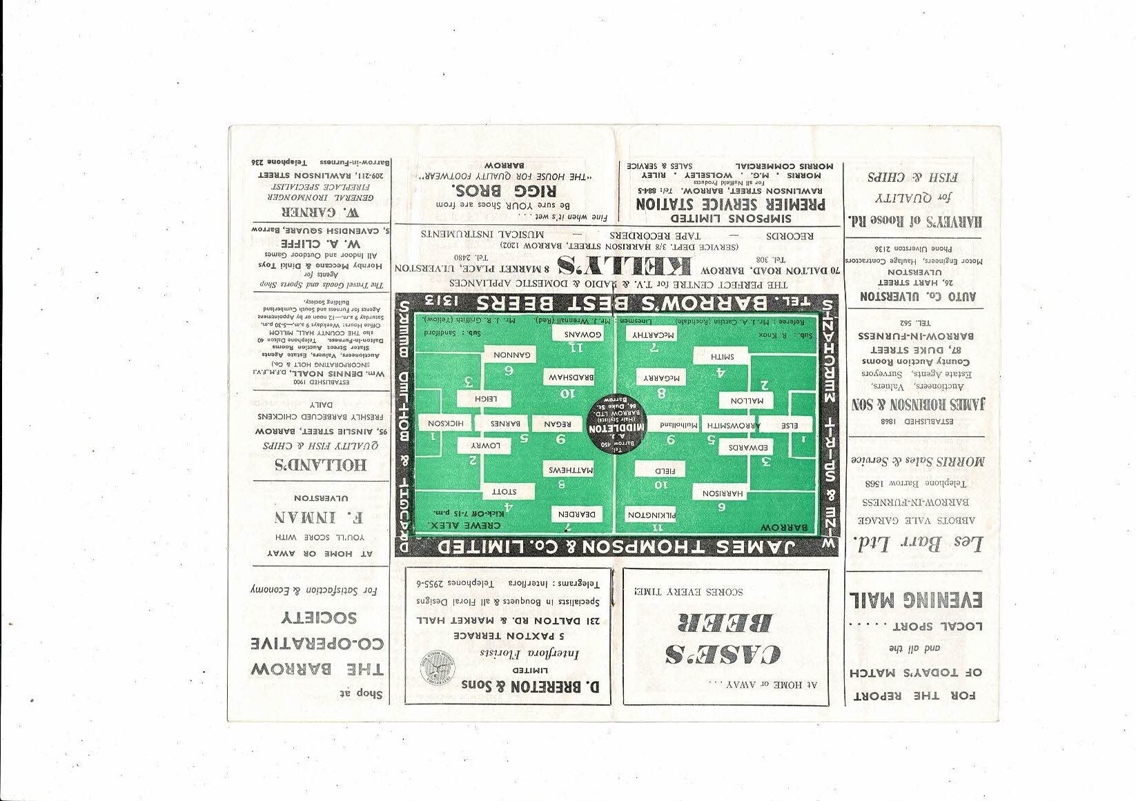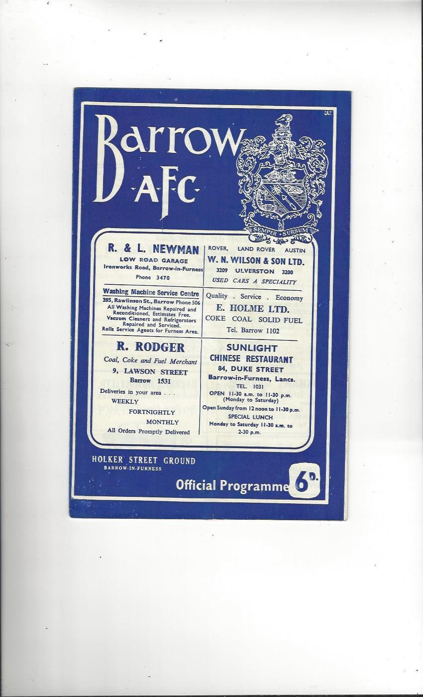 1966/67 Barrow v Crewe Alexandra Football Programme