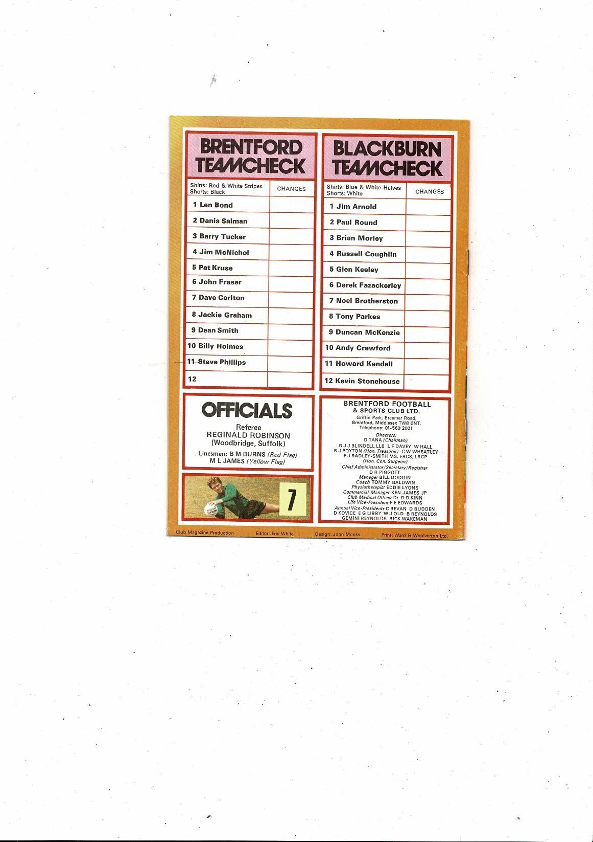 1979/80 Brentford v Blackburn Rovers Football Programme