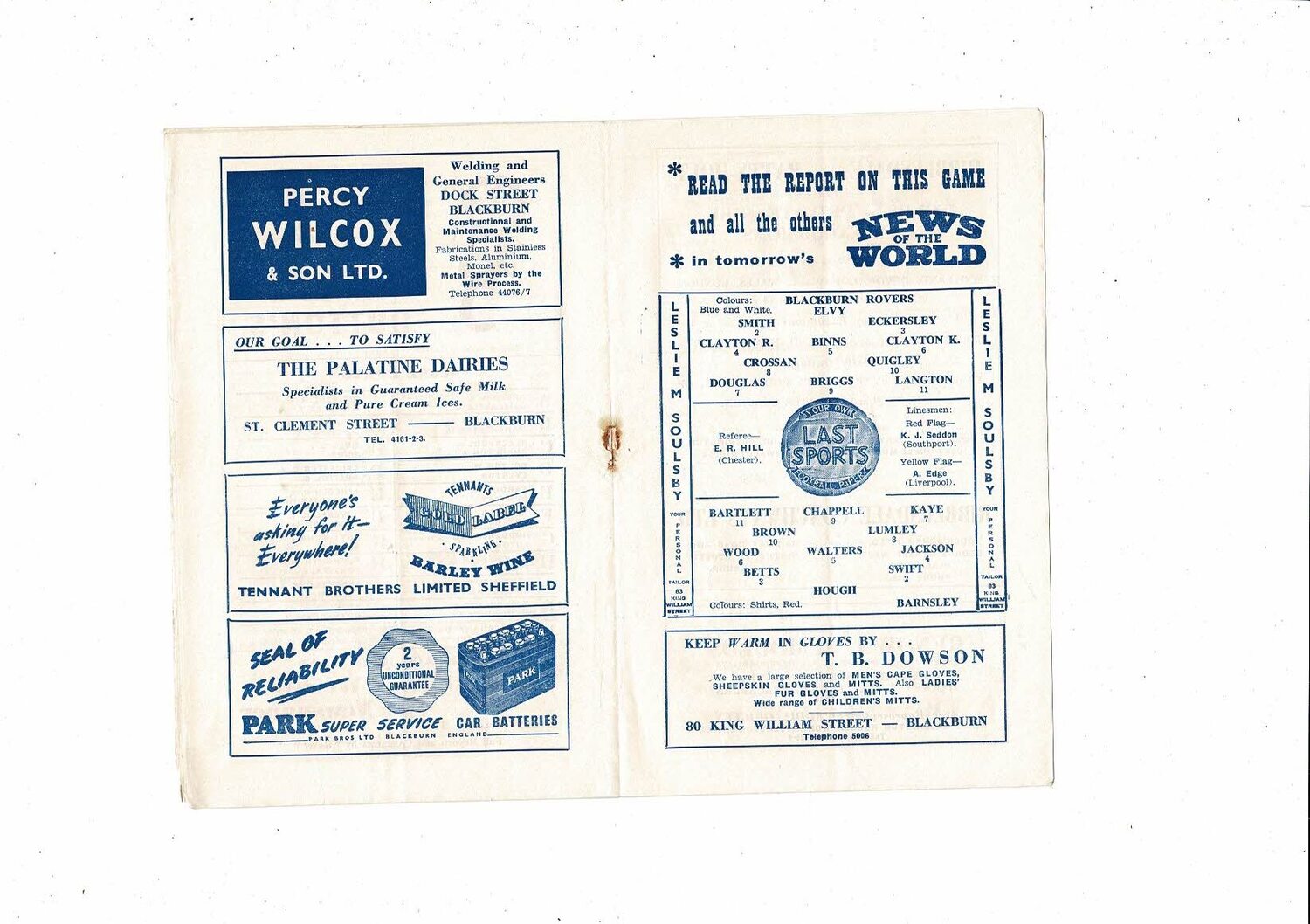1955/56 Blackburn Rovers v Barnsley Football Programme