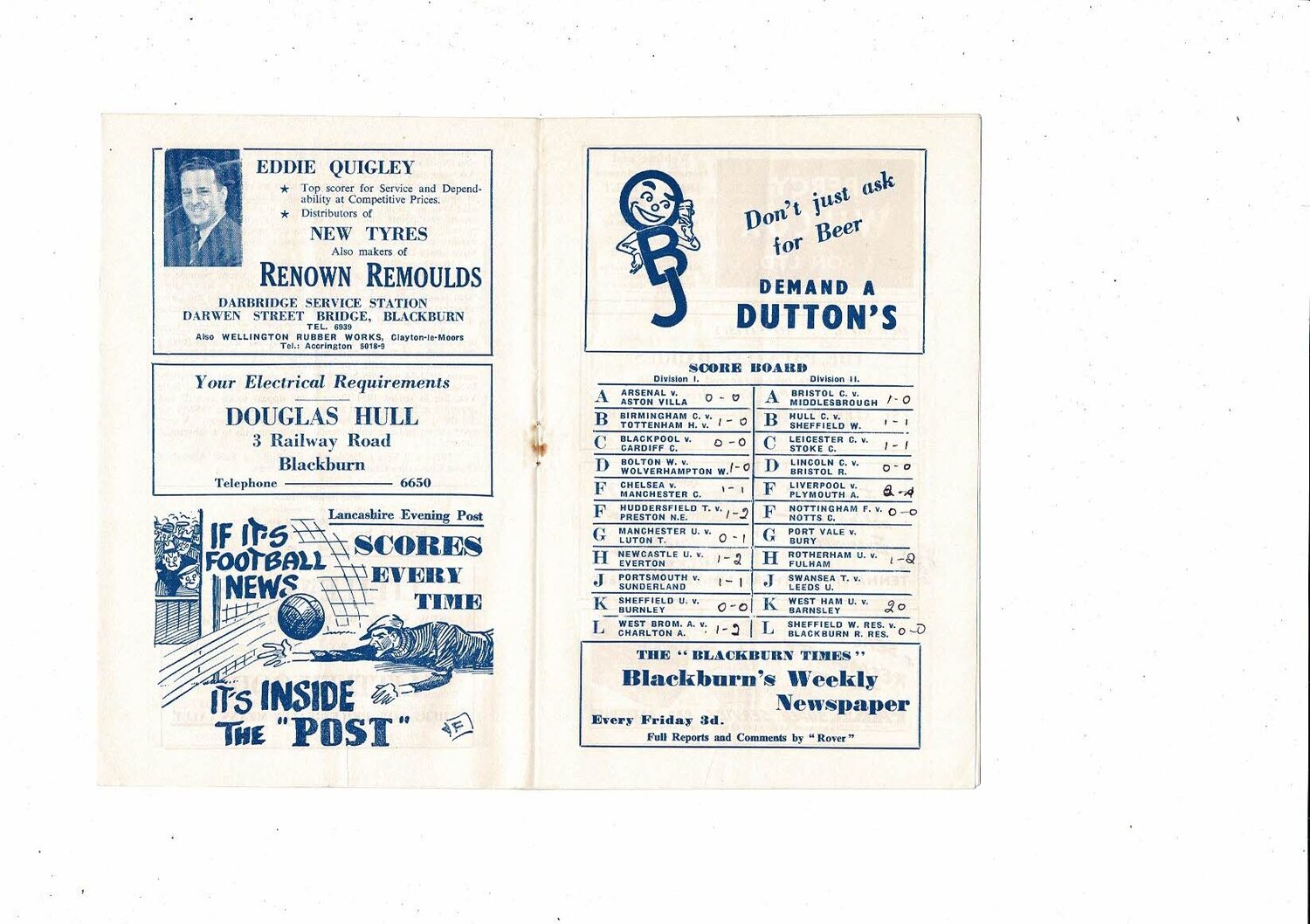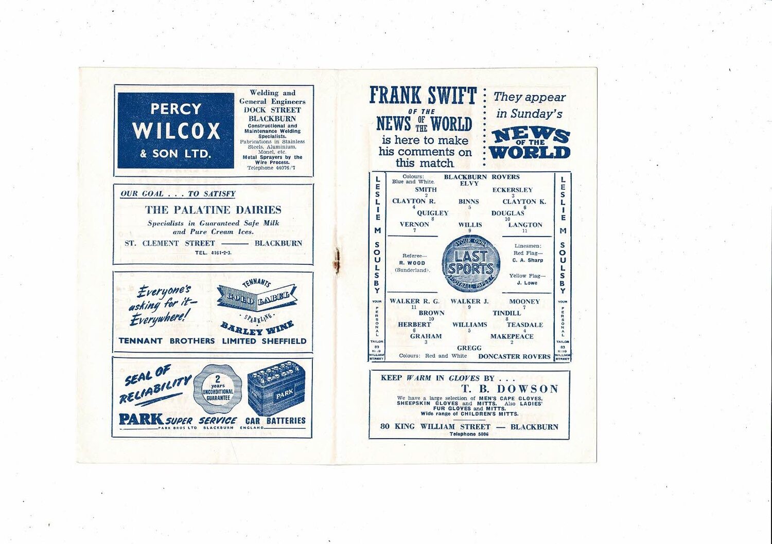 1955/56 Blackburn Rovers v Doncaster Rovers Football Programme