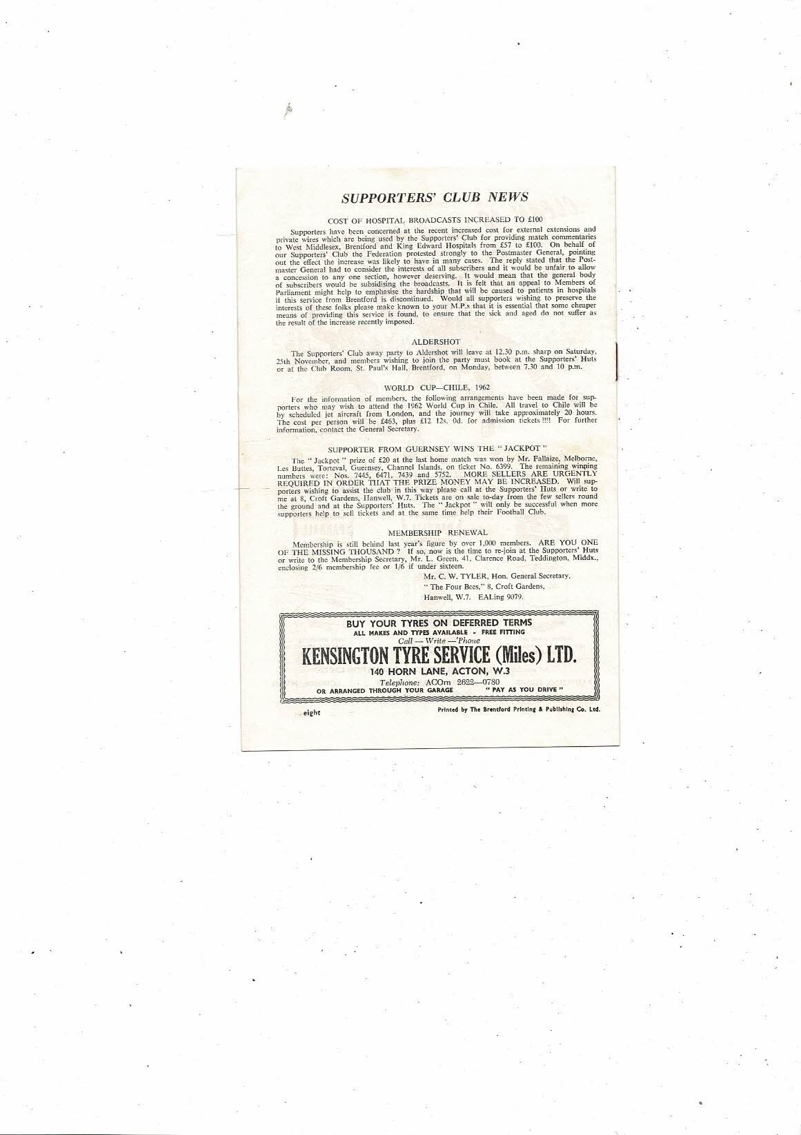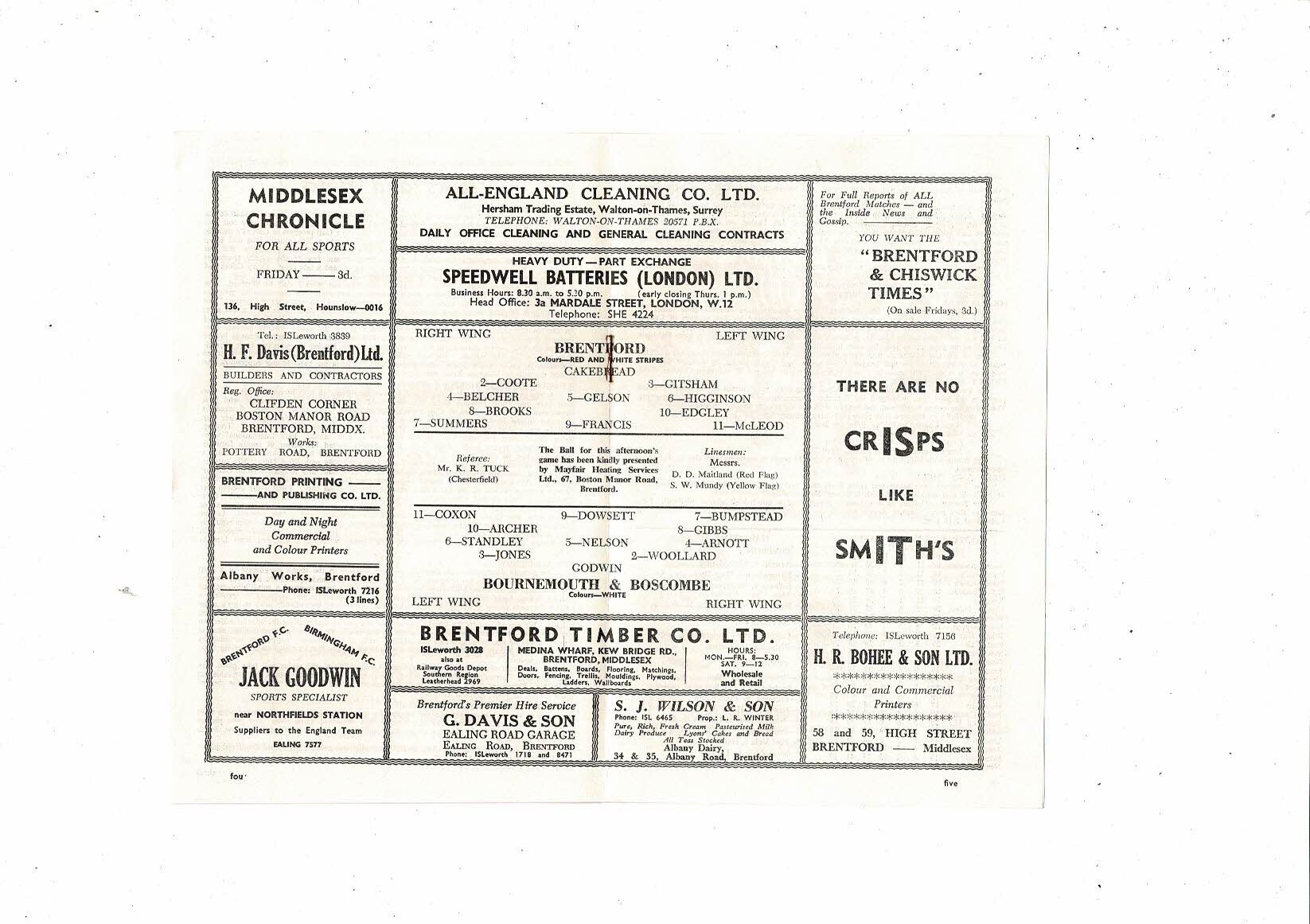 1961/62 Brentford v Bournemouth Football Programme