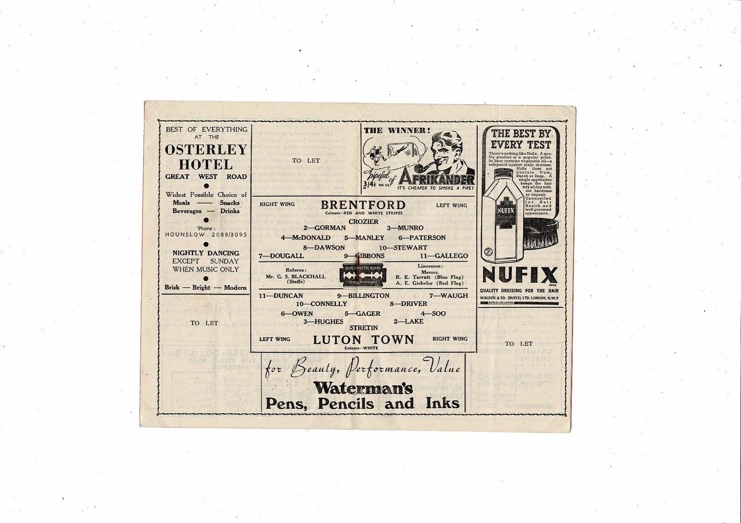 1947/48 Brentford v Luton Town Football Programme