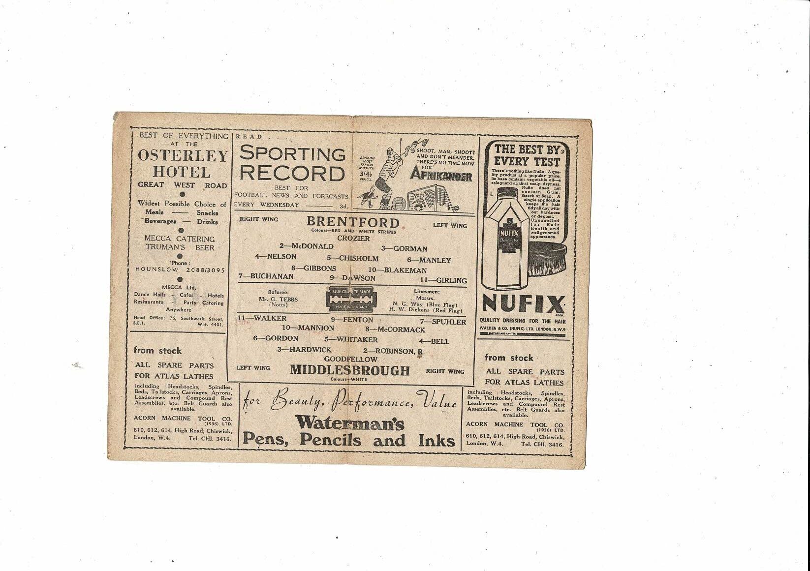 1947/48 Brentford v Middlesbrough FA Cup Football Programme