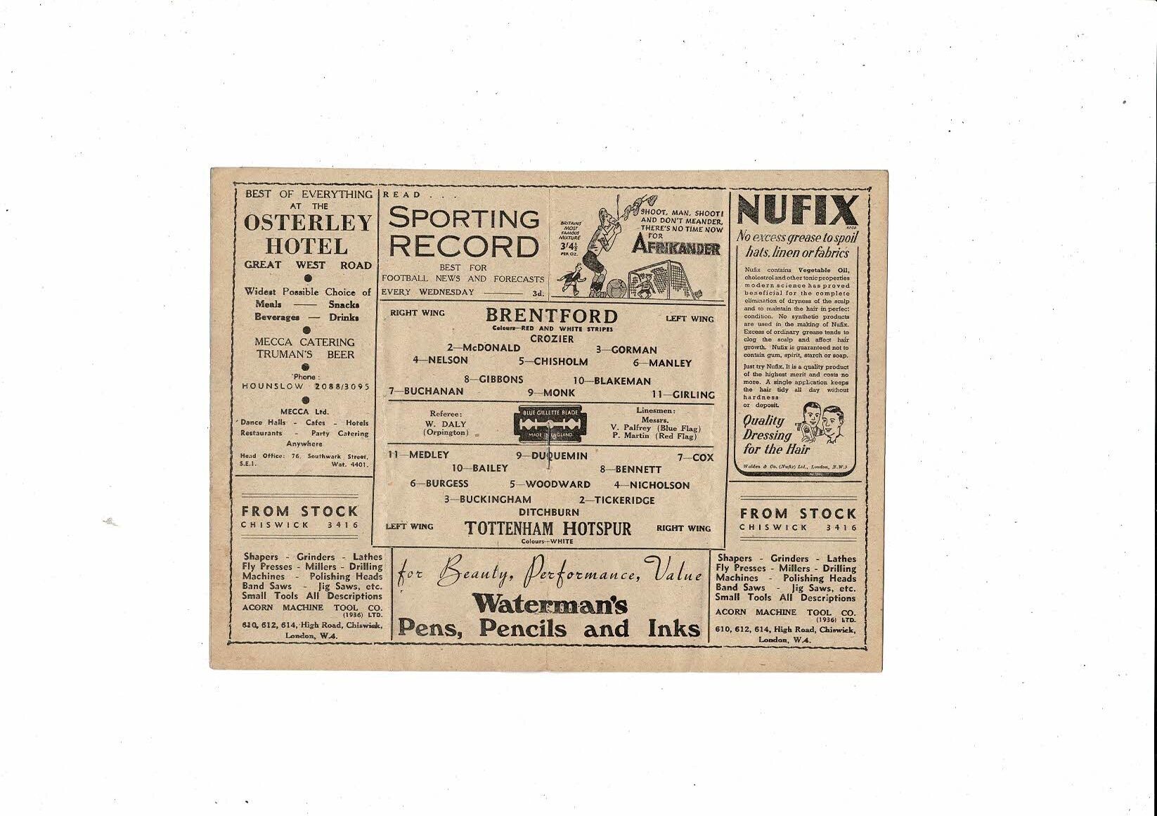 1947/48 Brentford v Tottenham Hotspur Football Programme 20th March 1948