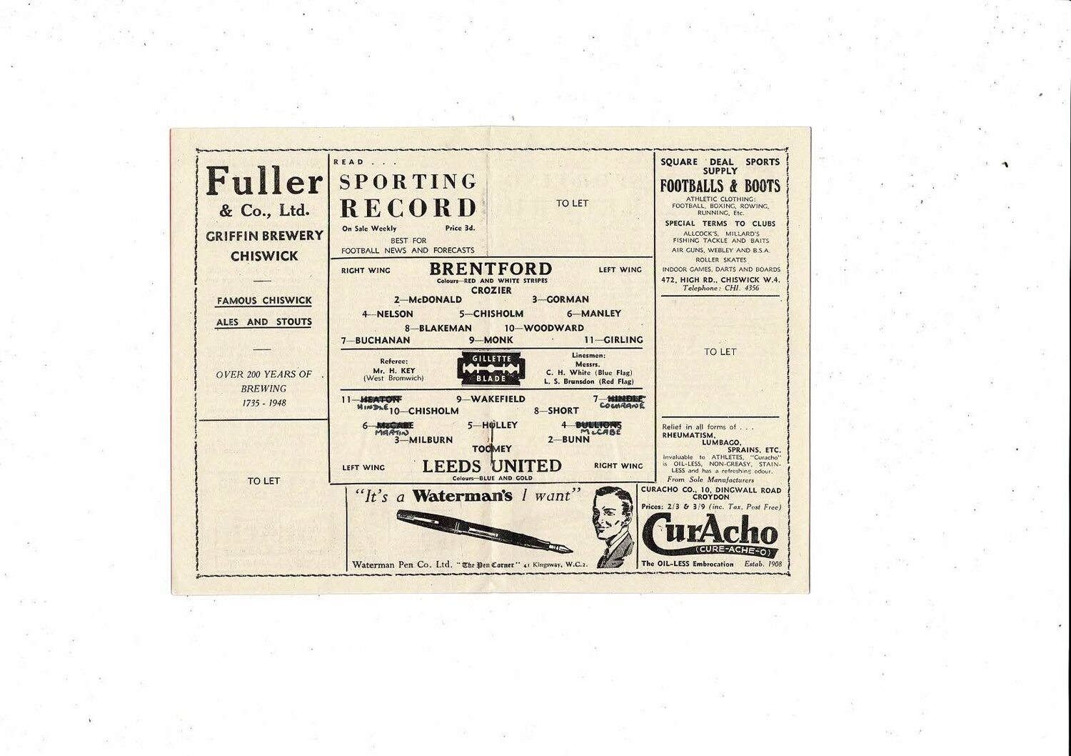 1948/49 Brentford v Leeds United Football Programme 1st September 1948