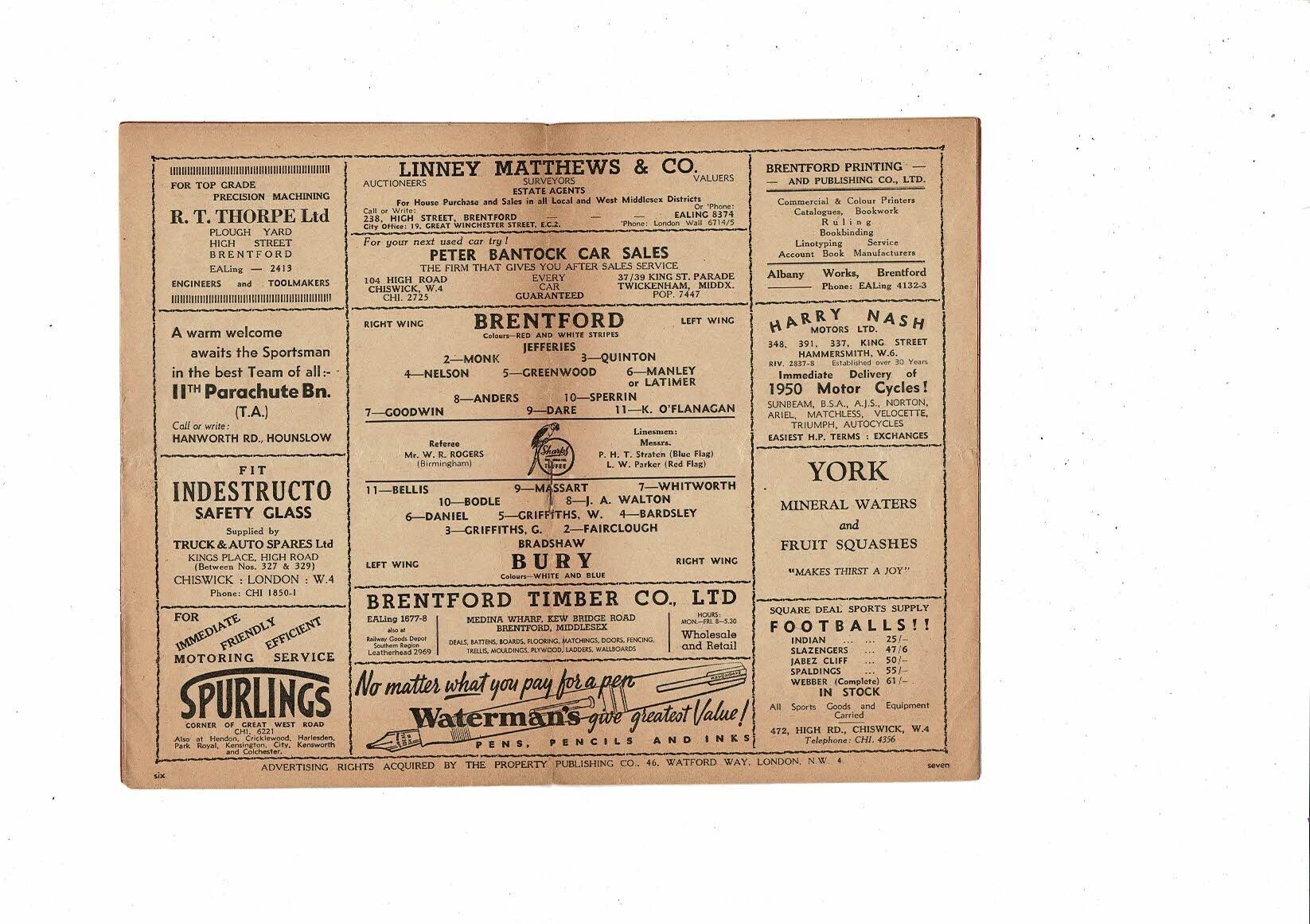 1949/50 Brentford v Bury Football Programme