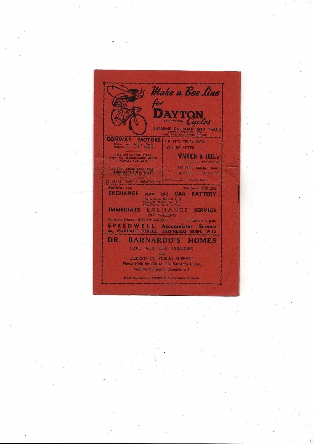 This Original Football Programme is creased & folded with some staining on front cover, rusty staple, tiny nic at both ends of spine & back page. No handwriting. Please see scans.