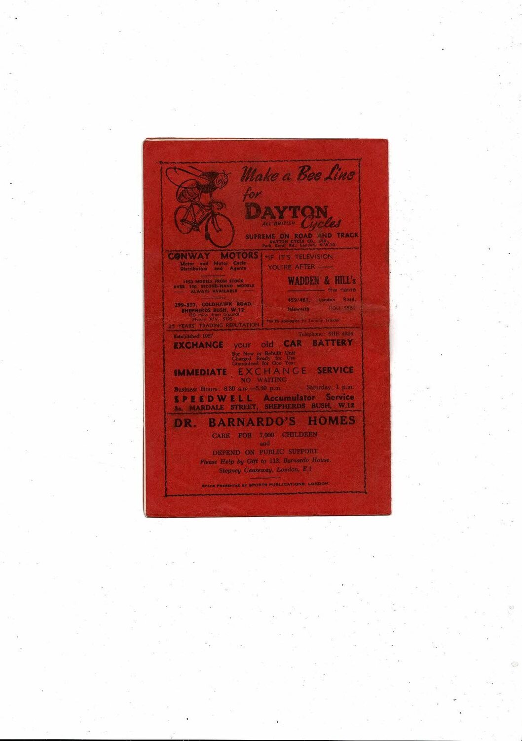 This original Football Programme is creased also has a fold with some staining, letters noted on front, rusty staple & tiny nic at both ends of spine. Please see scans
