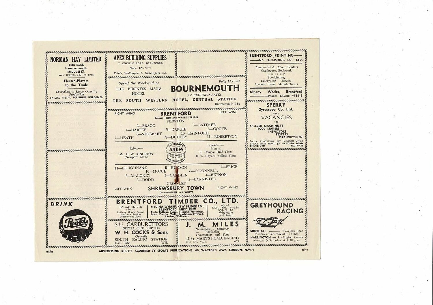 1954/55 Brentford v Shrewsbury Town Football Programme