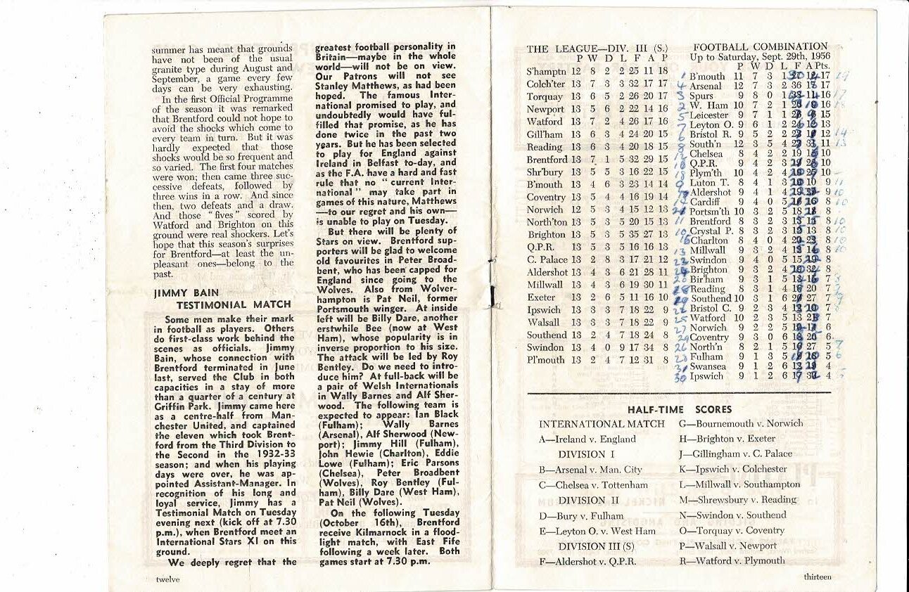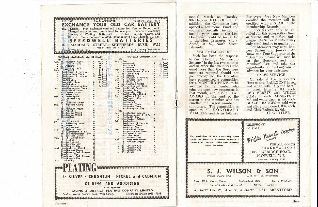 1956/57 Brentford v Northampton Town Football Programme