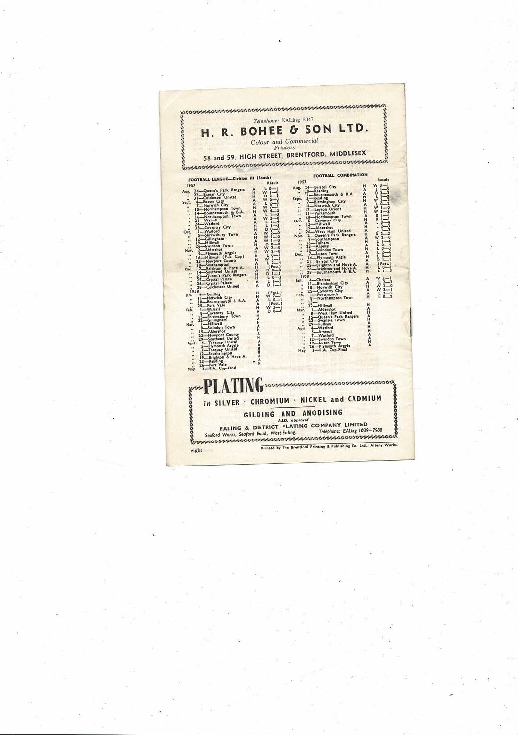 1957/58 Brentford v Shrewsbury Town Football Programme