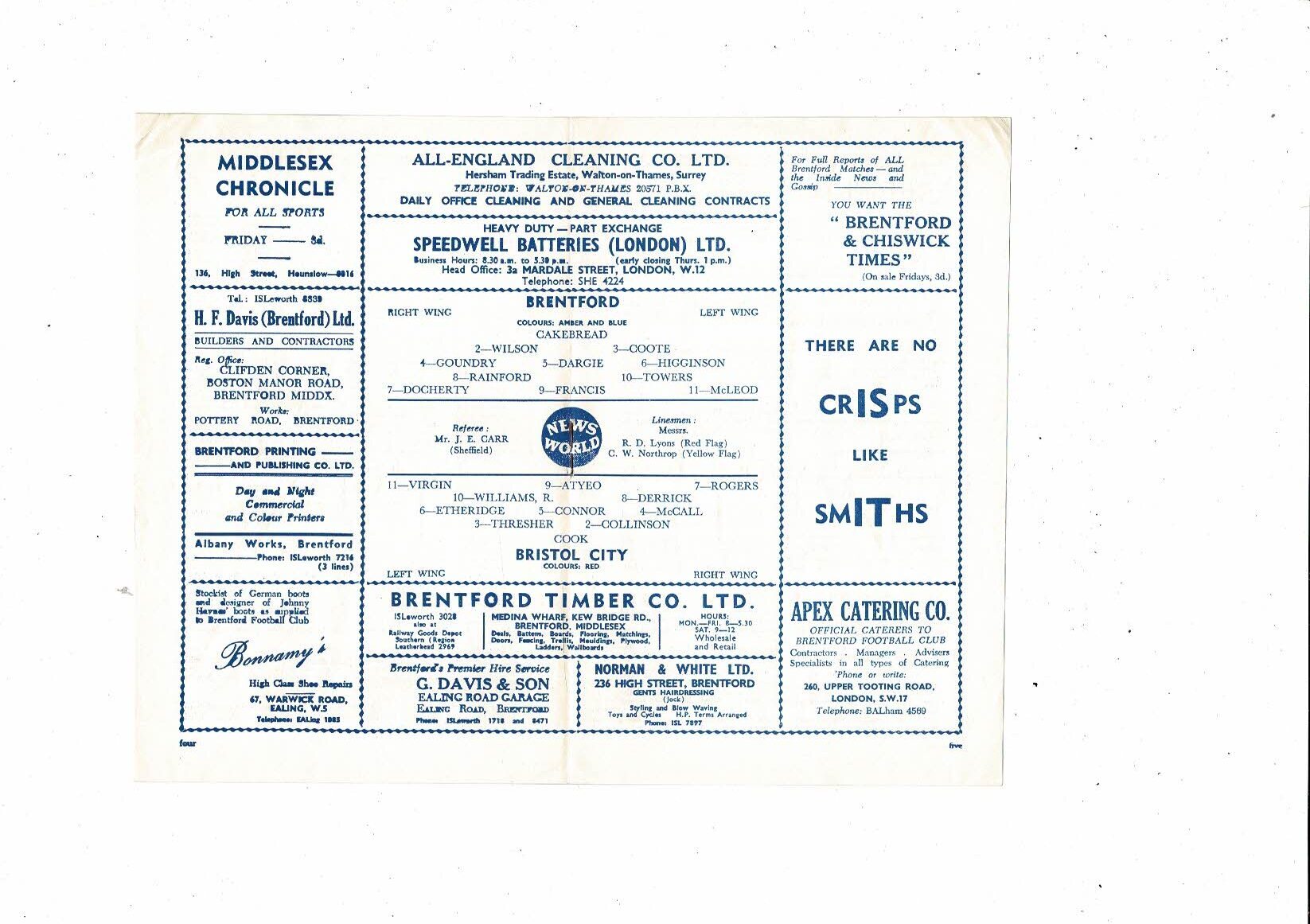 1960/61 Brentford v Bristol City Football Programme