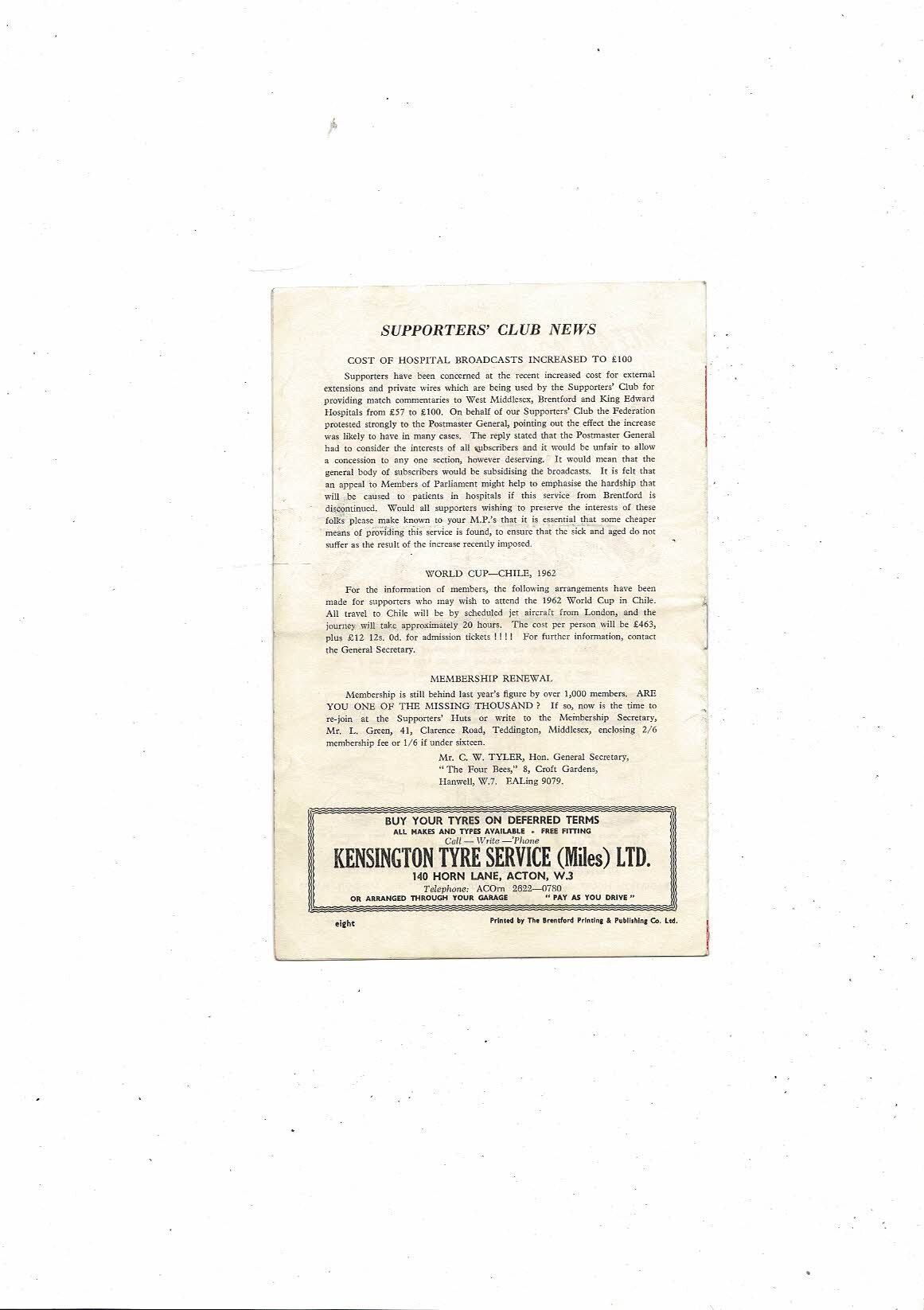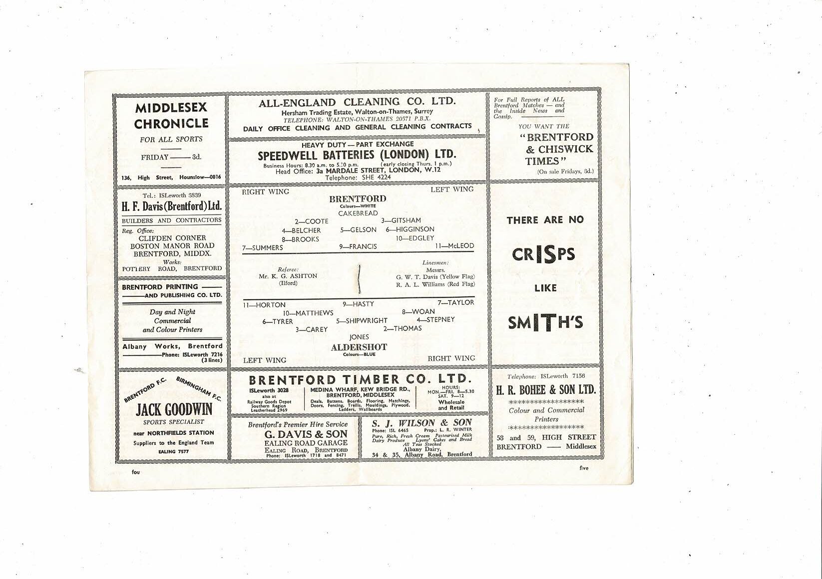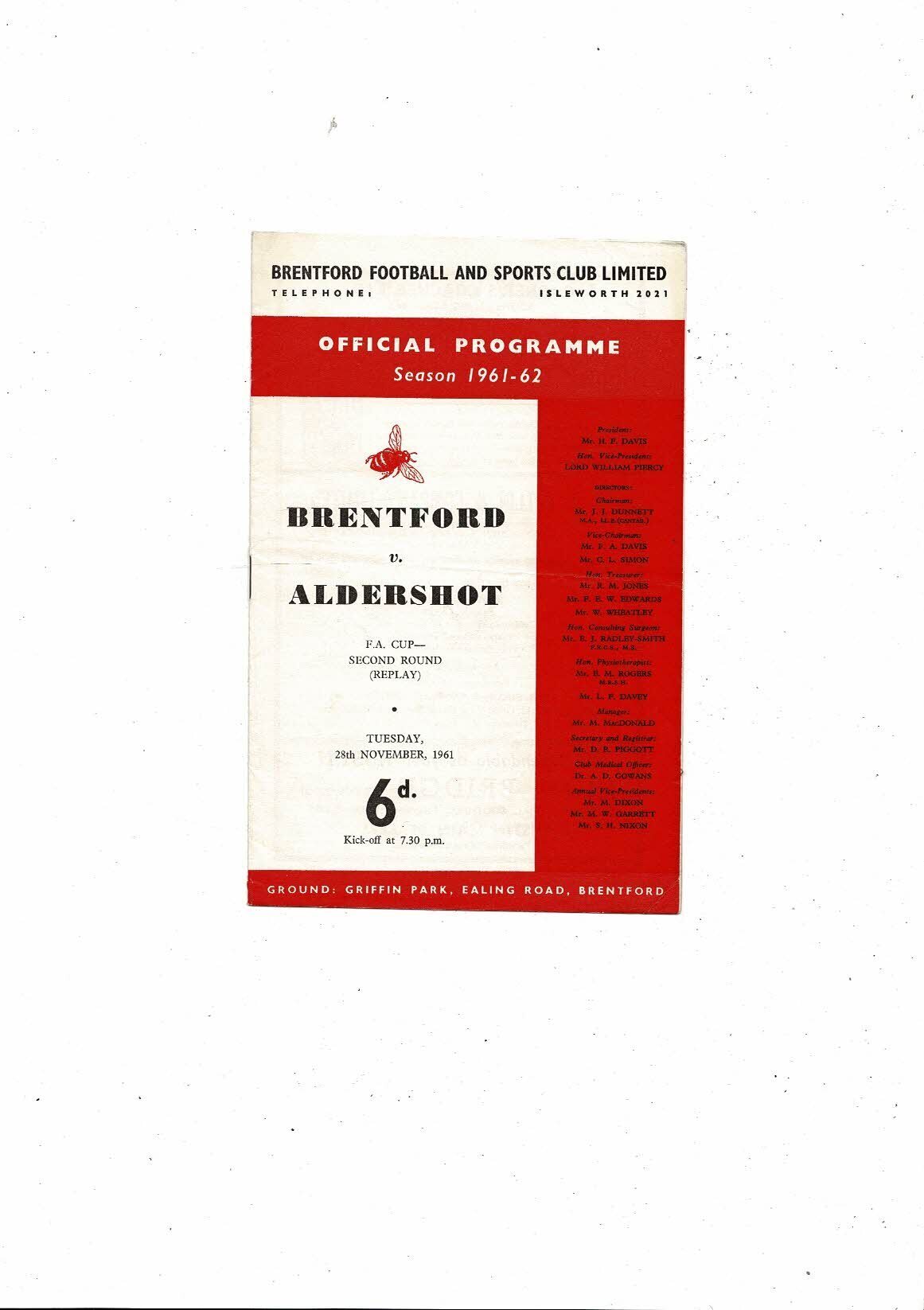 1961/62 Brentford v Aldershot FA Cup Football Programme