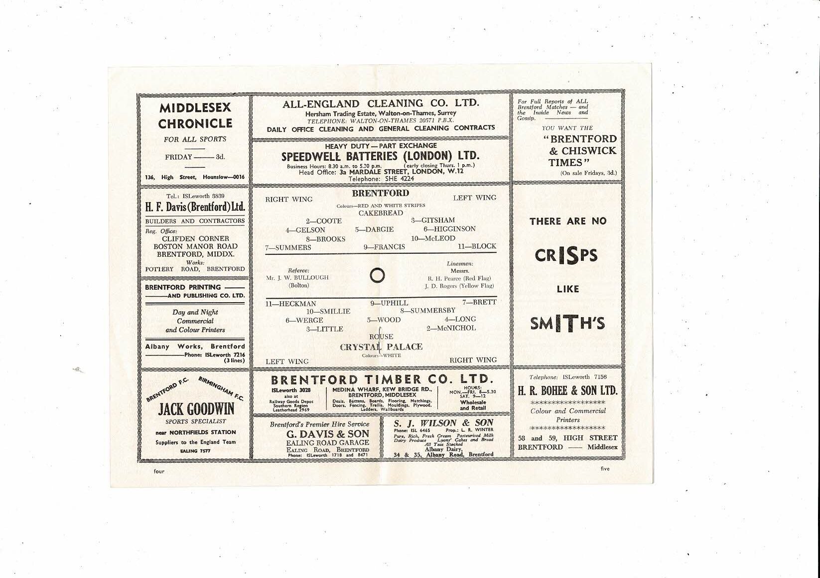 This Original Football Programme is slightly creased with some very minor stainng. No handwriting. Please see scans.