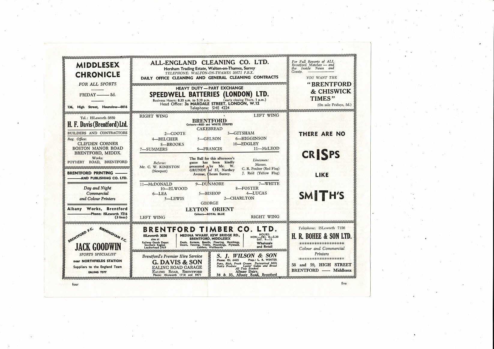 1961/62 Brentford v Leyton Orient FA Cup Football Programme