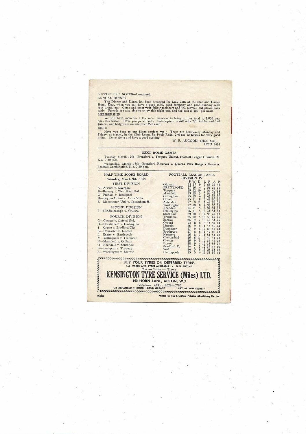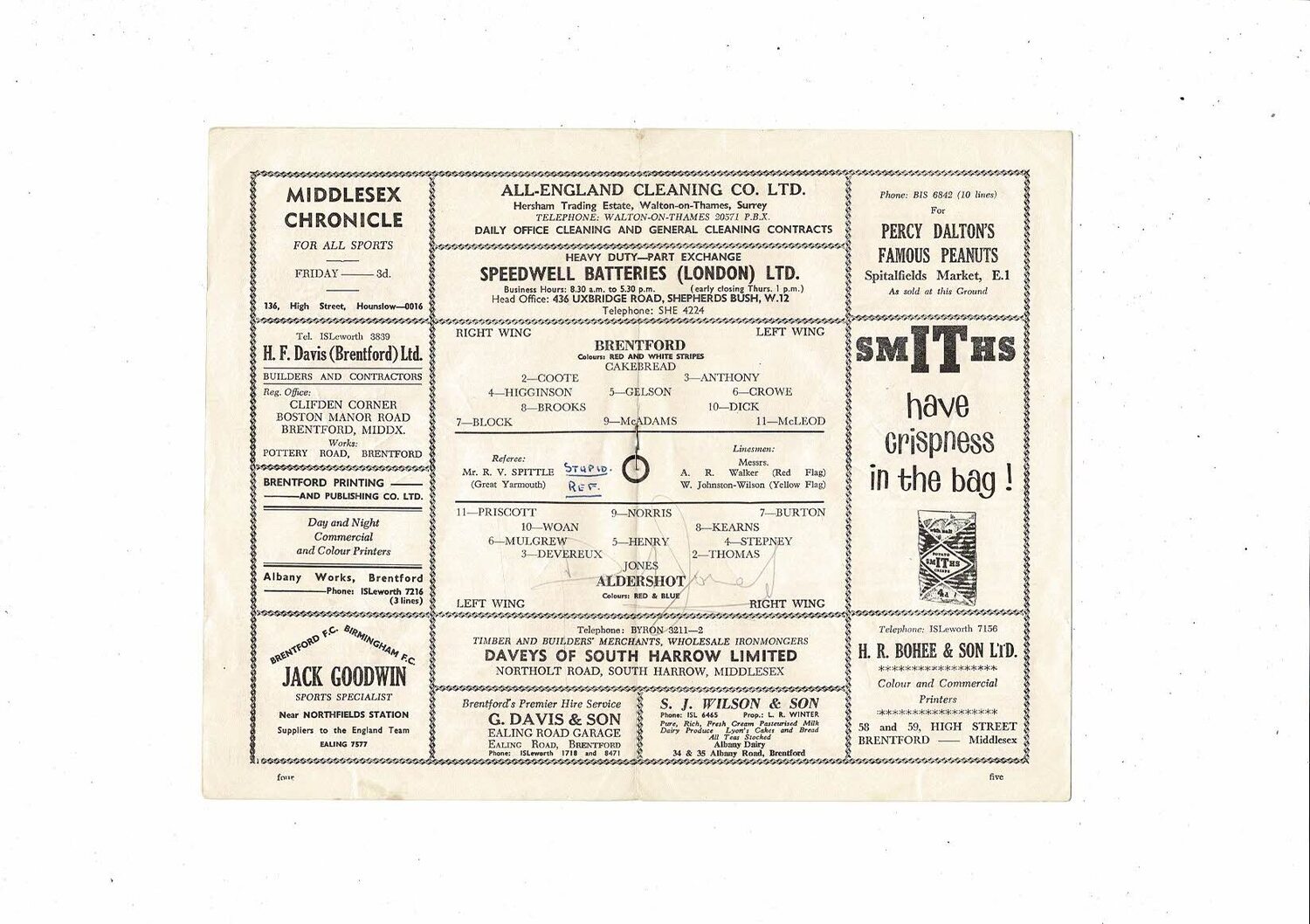 1962/63 Brentford v Aldershot Football Programme - many autographs