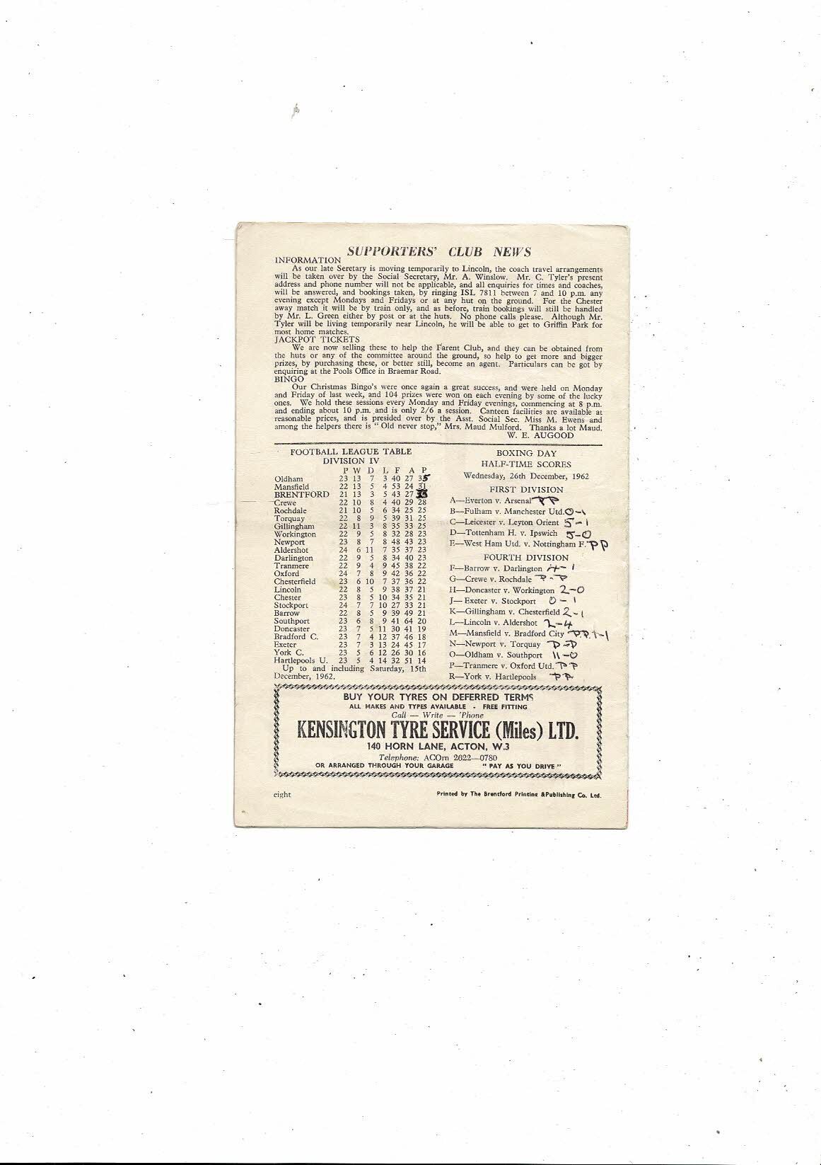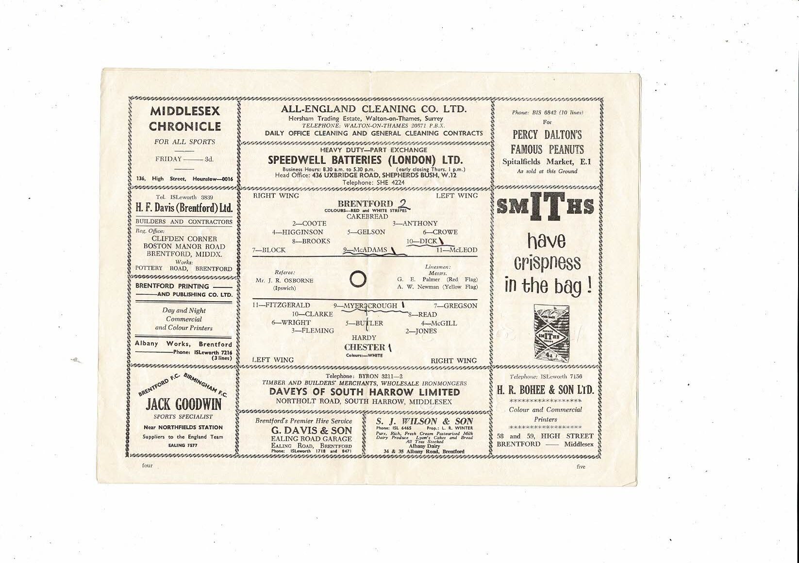 1962/63 Brentford v Chester City Football Programme