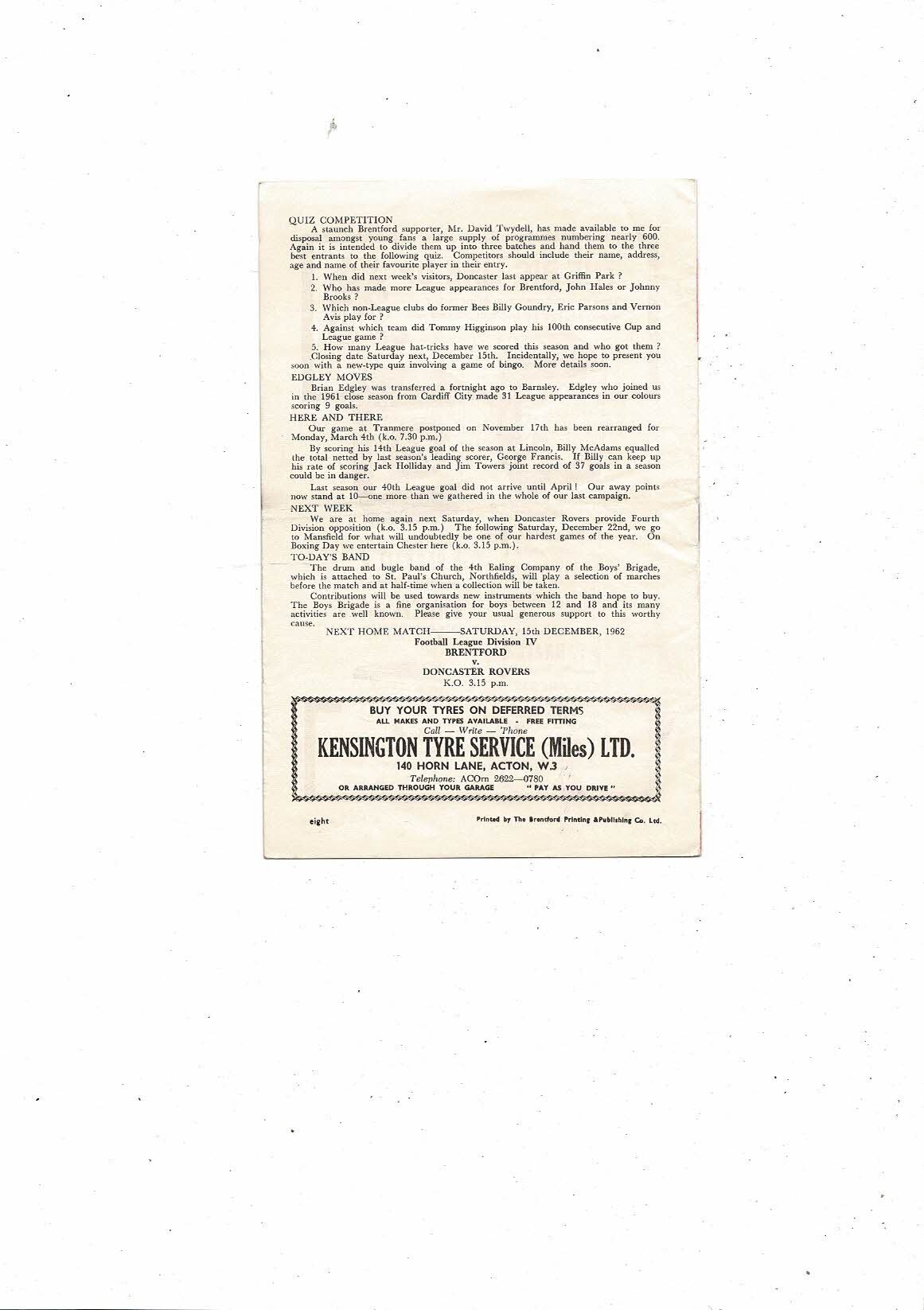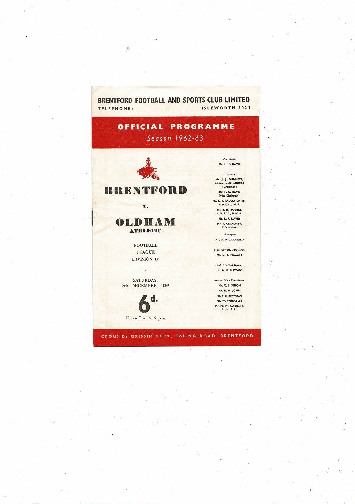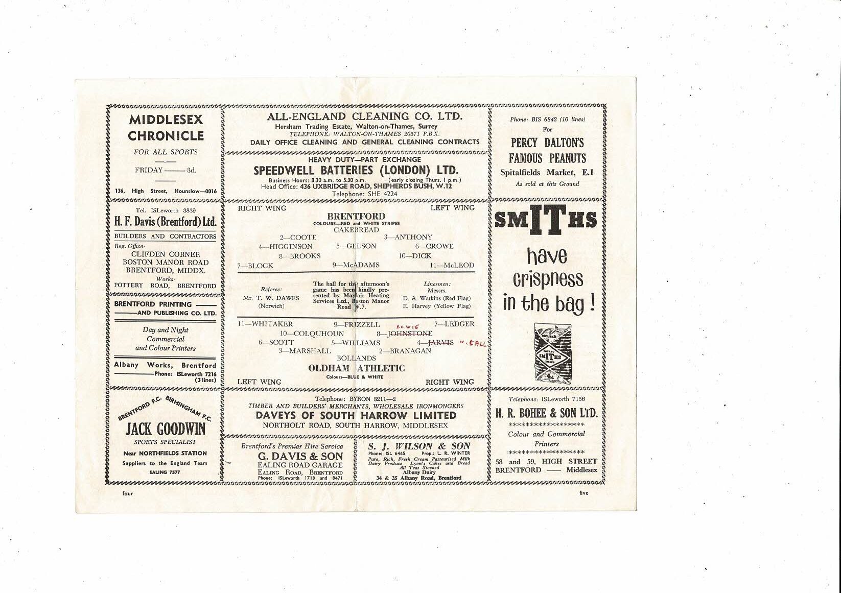 1962/63 Brentford v Oldham Athletic Football Programme
