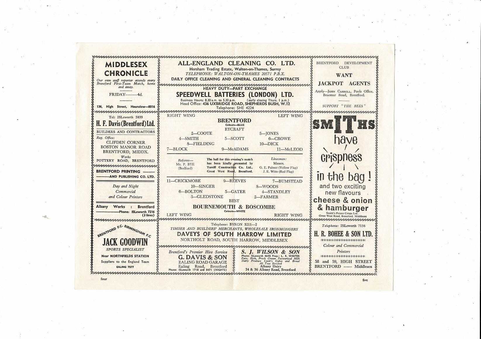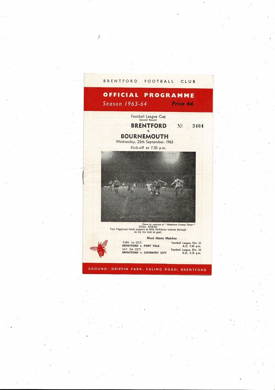 1963/64 Brentford v Bournemouth League Cup Football Programme
