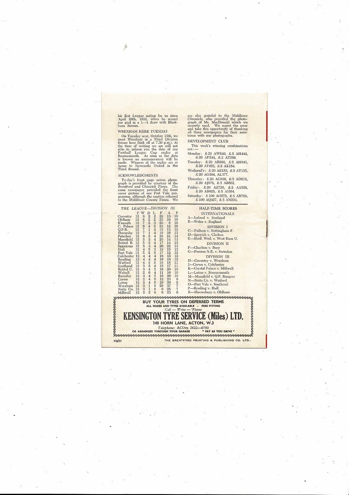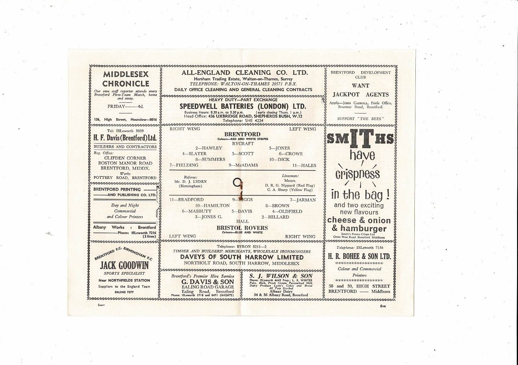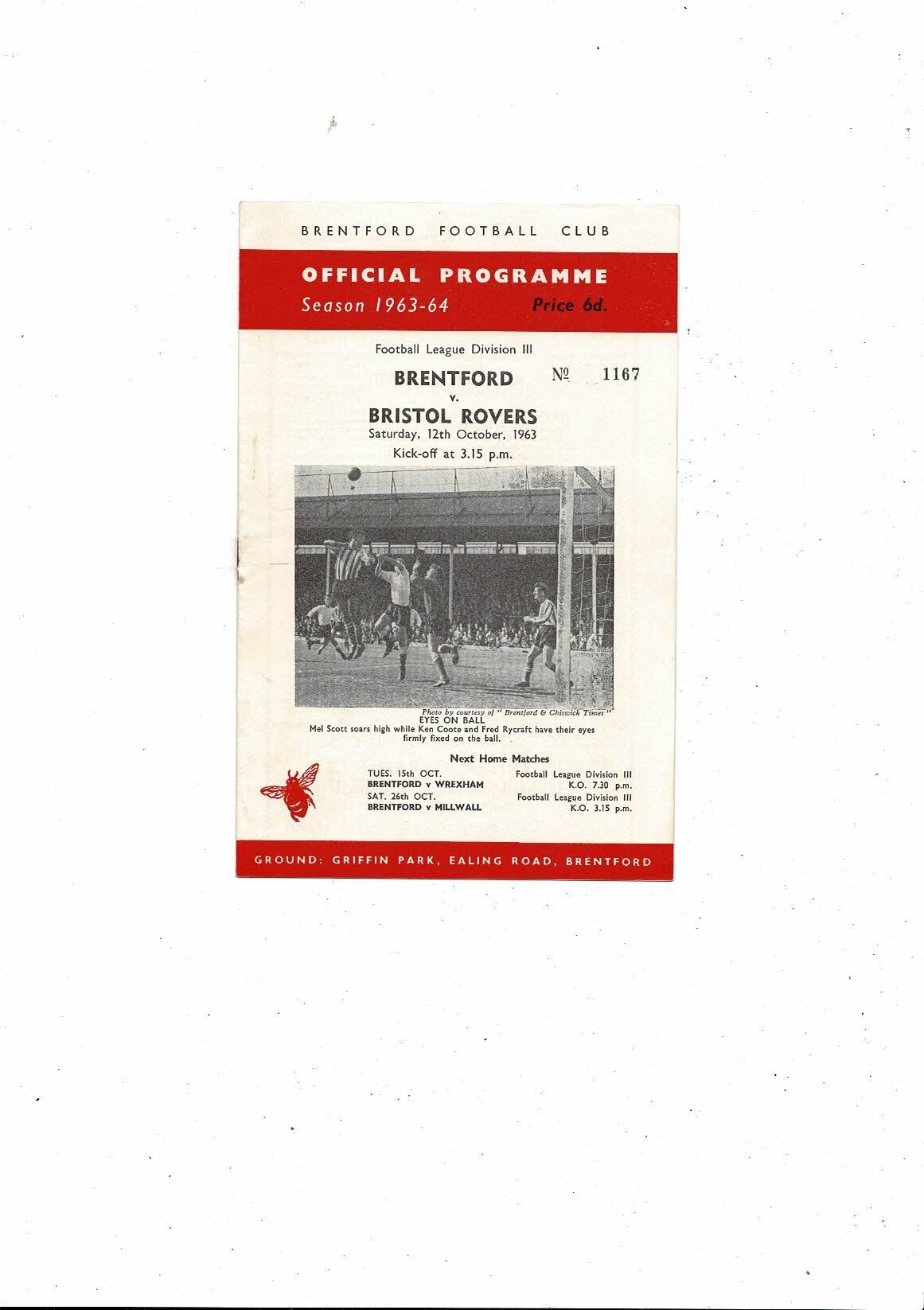 1963/64 Brentford v Bristol Rovers Football Programme