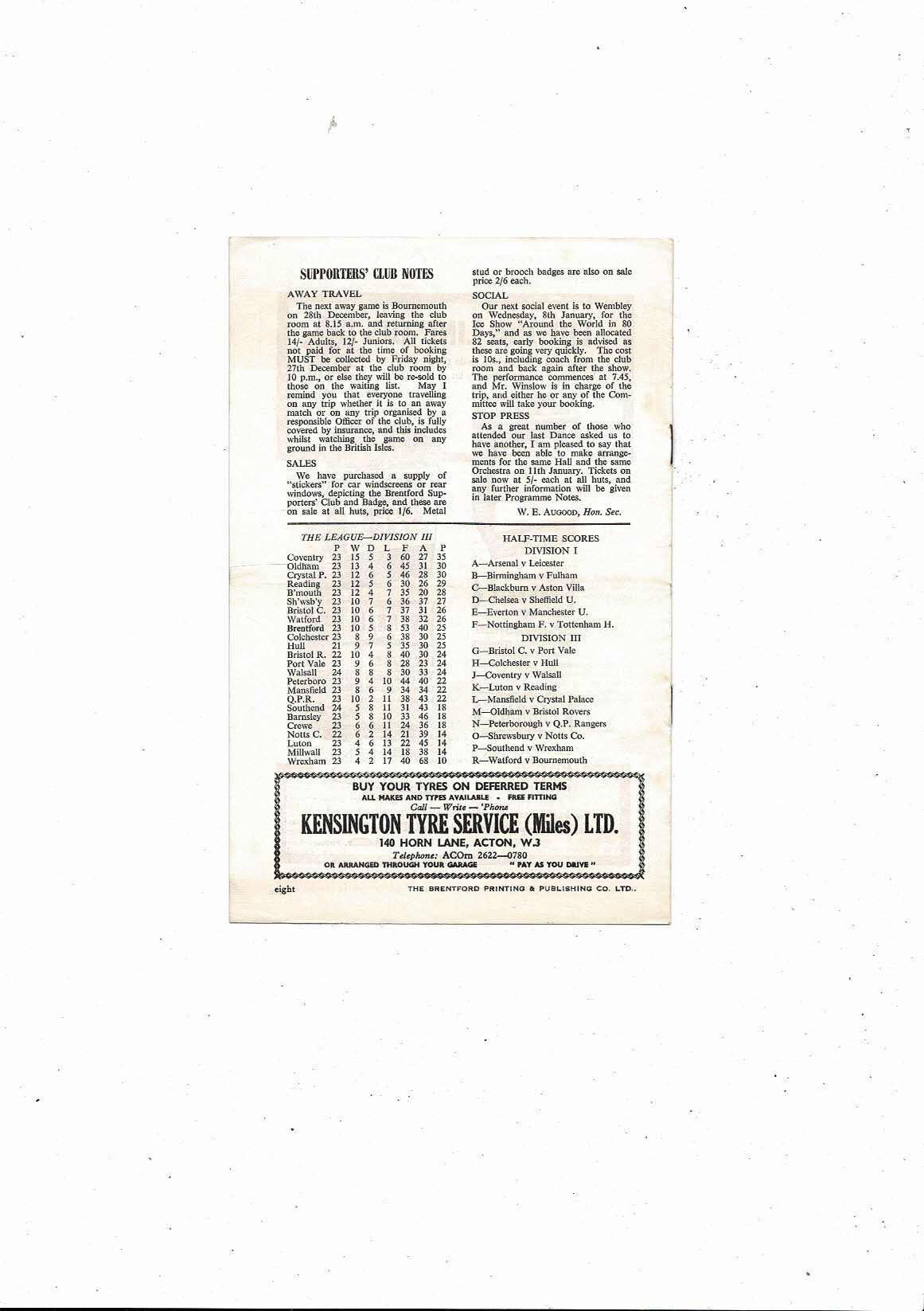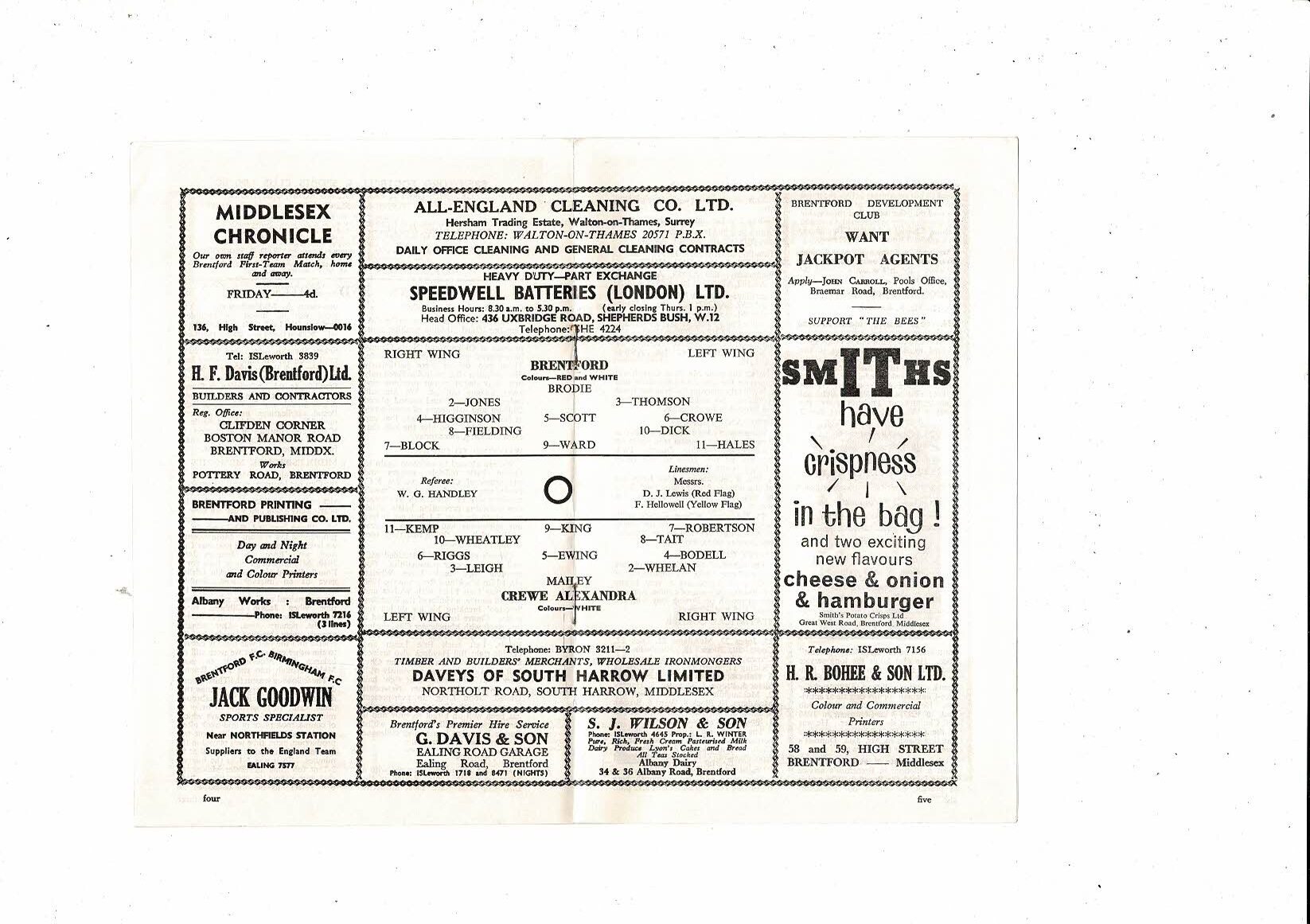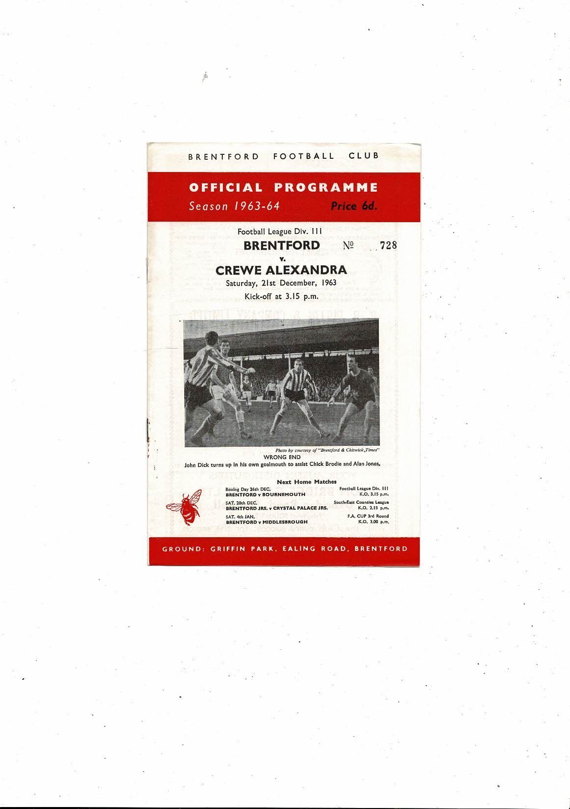 1963/64 Brentford v Crewe Alexandra Football Programme