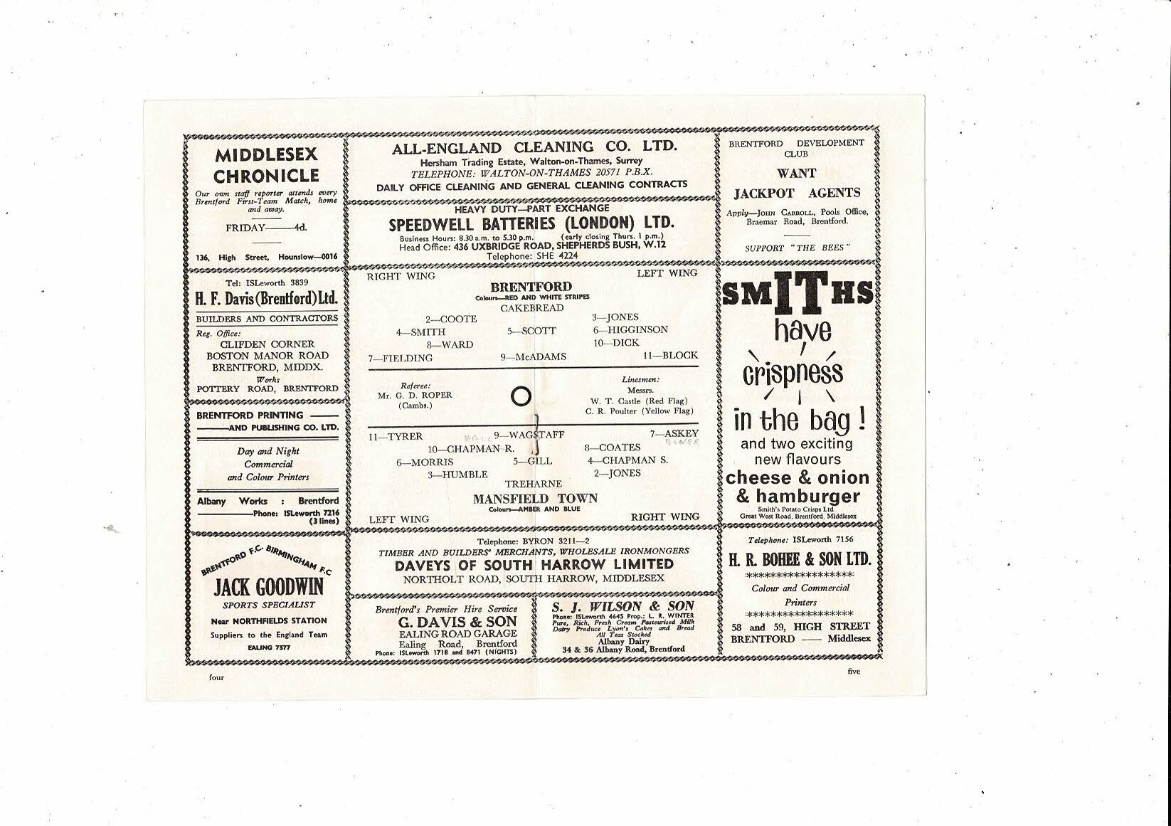 This Original Football Programme is slightly creased with two team changes in pencil & stape just starting to rust. Plese see scans.