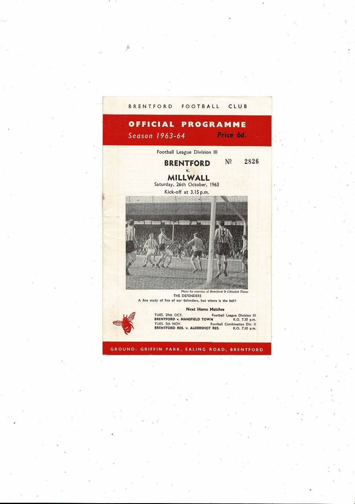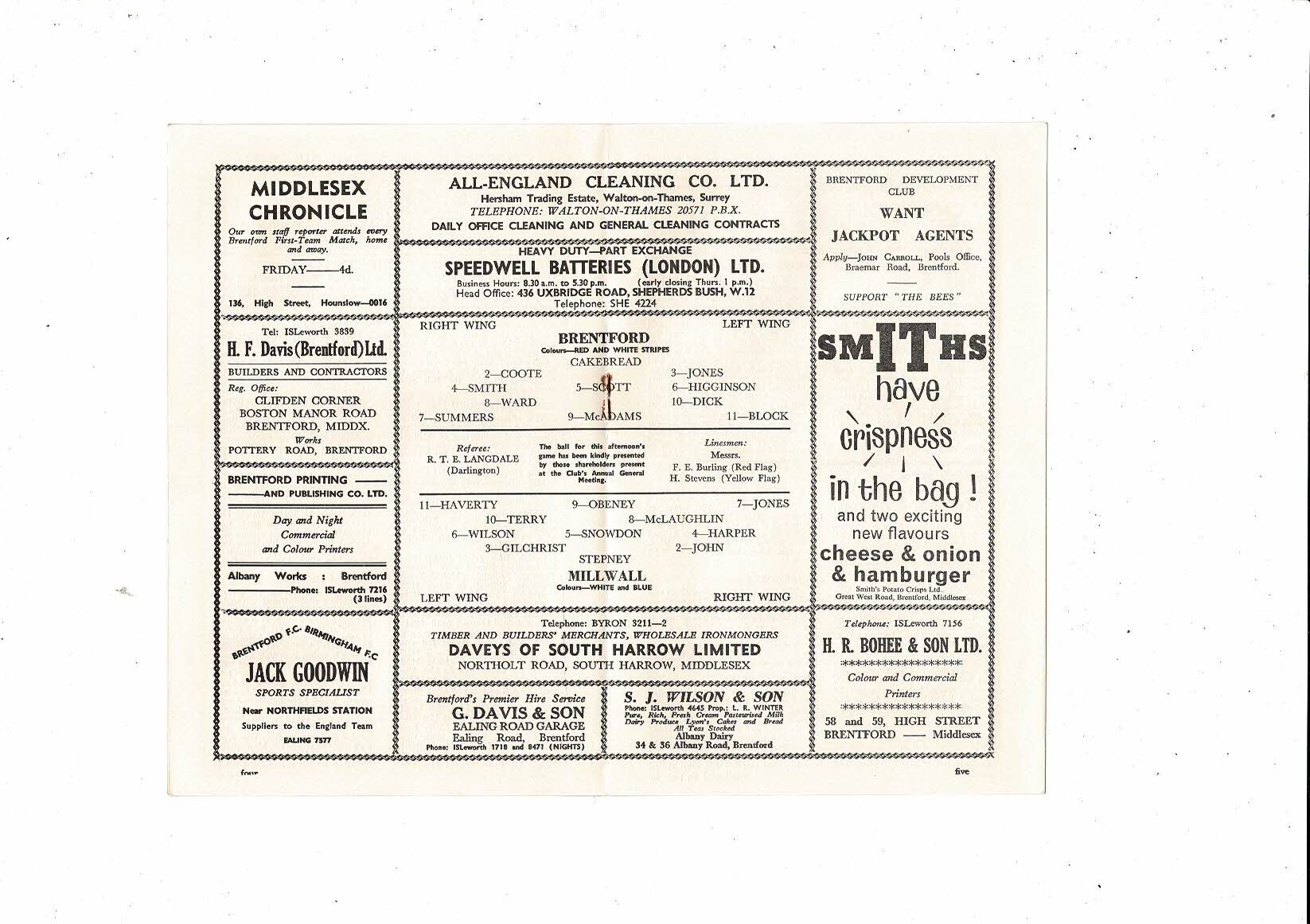 1963/64 Brentford v Millwall Football Programme