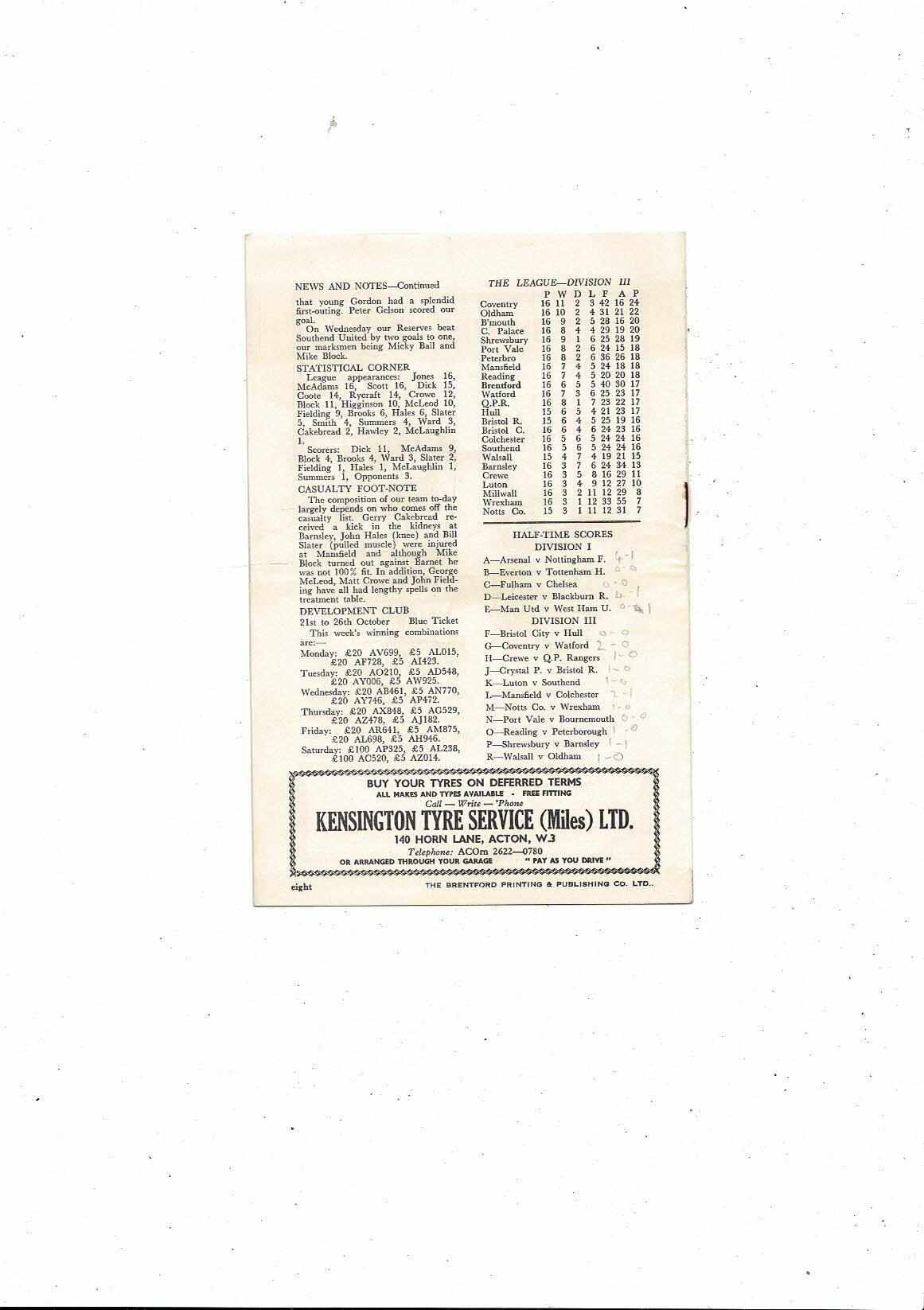 This Original Football Programme is slightly creased with some minor staining, staple starting to rust & results noted in pencil. Please see scans.