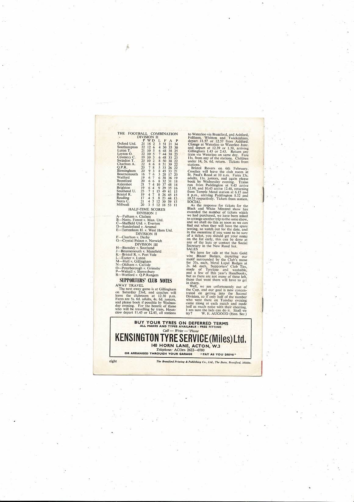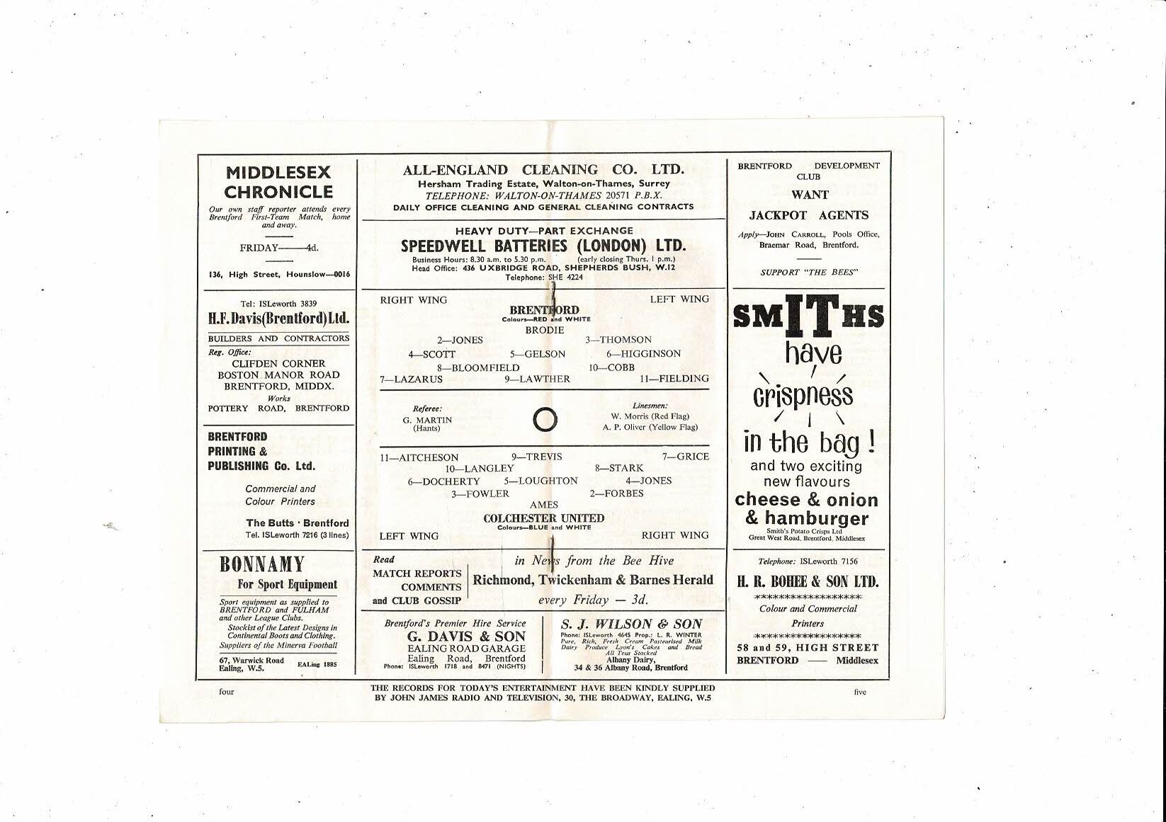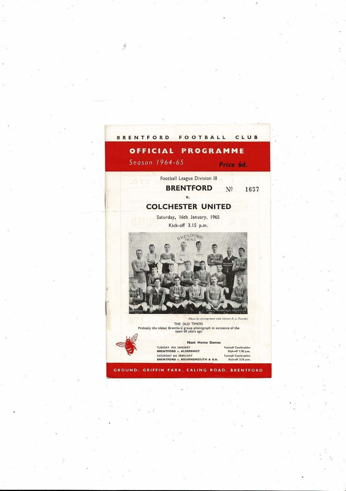 1964/65 Brentford v Colchester United Football Programme