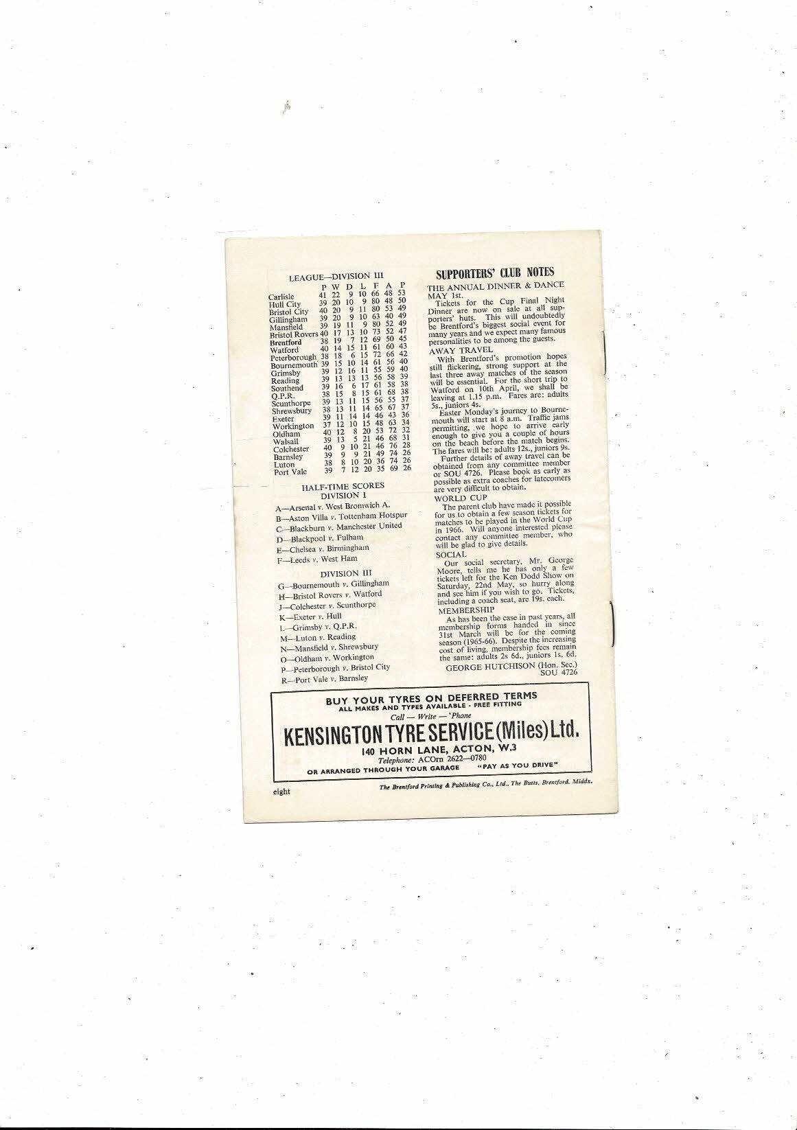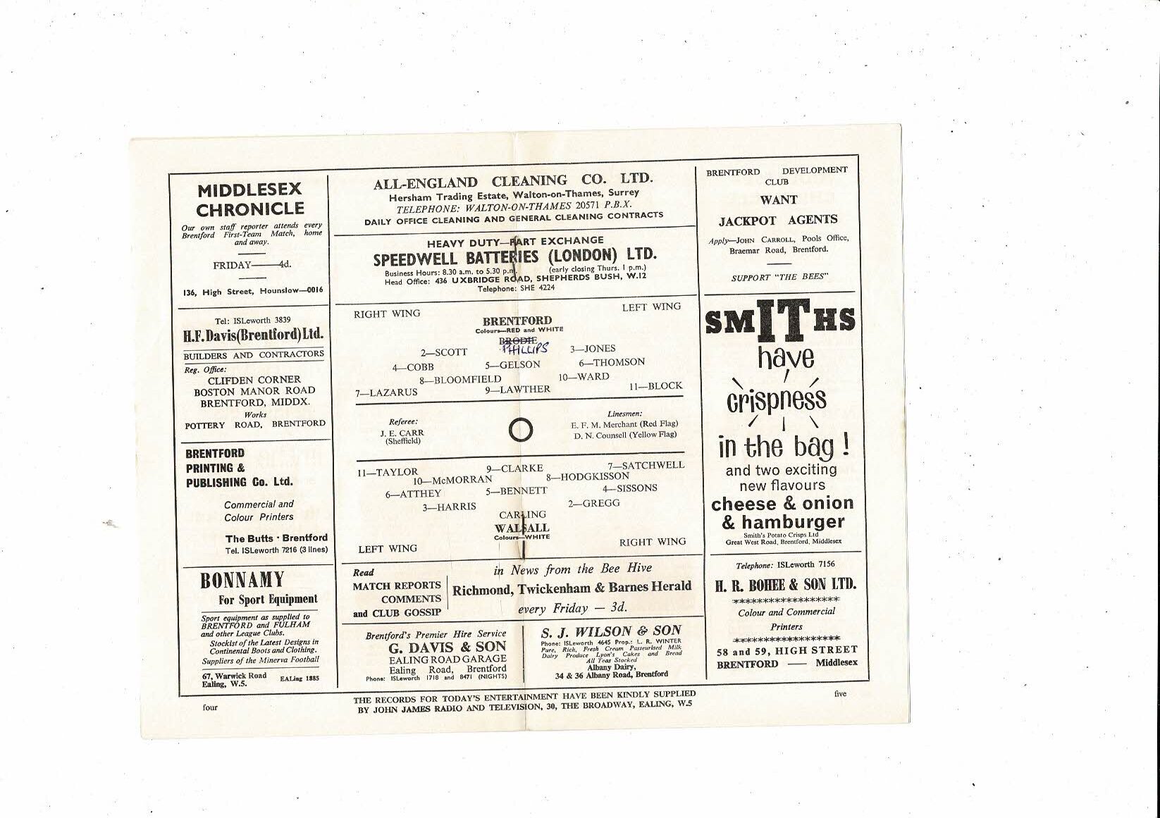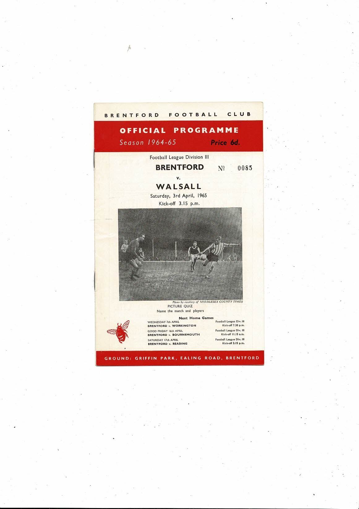 1964/65 Brentford v Walsall Football Programme