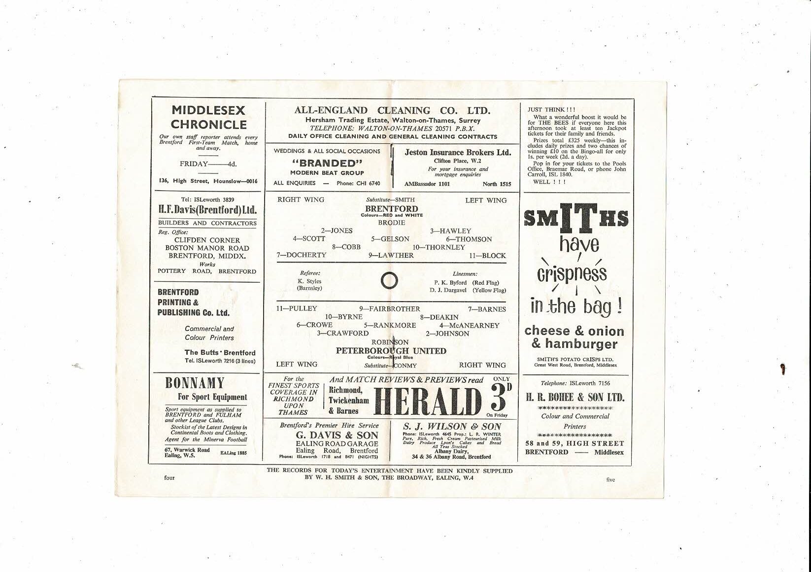 1965/66 Brentford v Peterborough United Football Programme