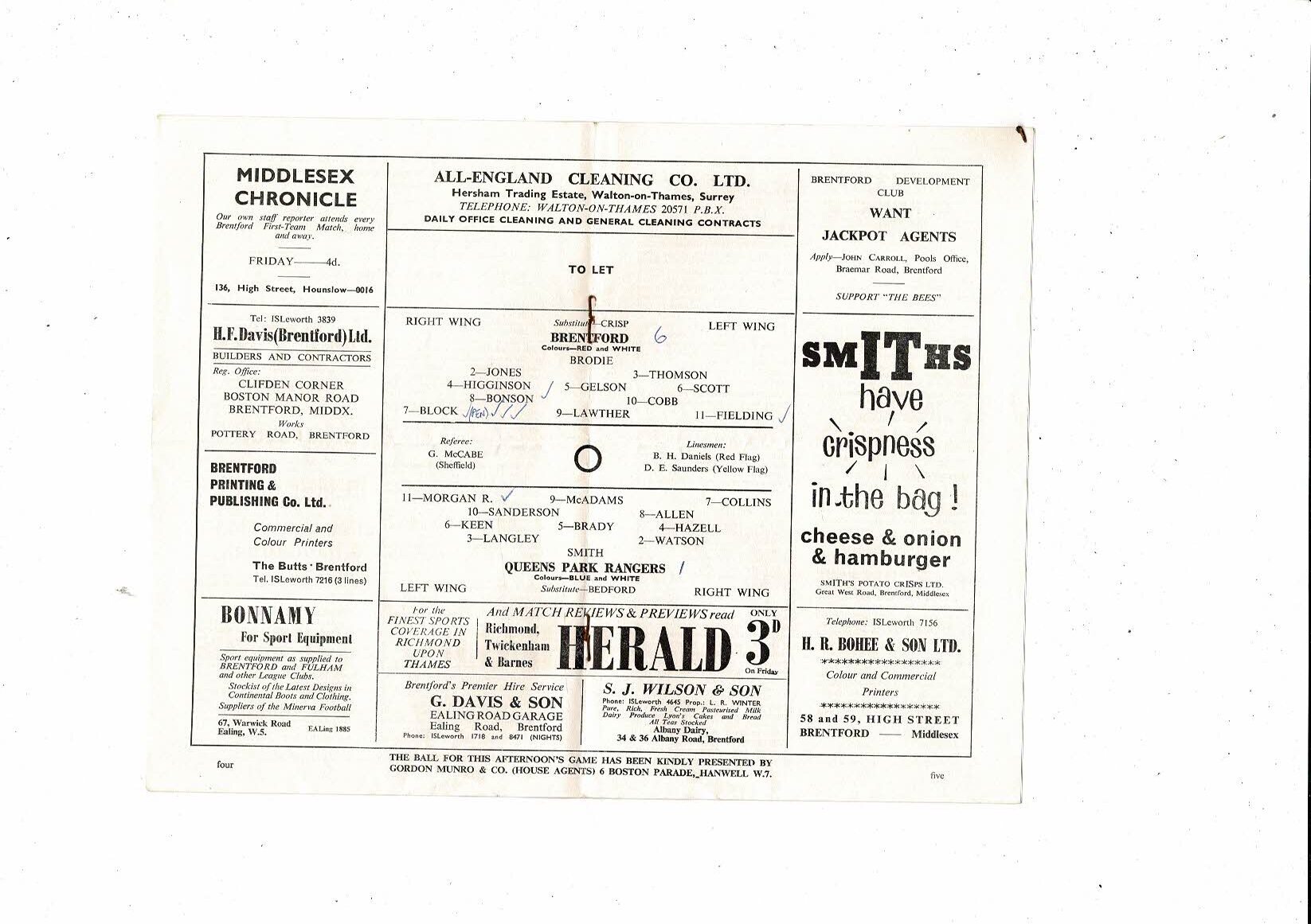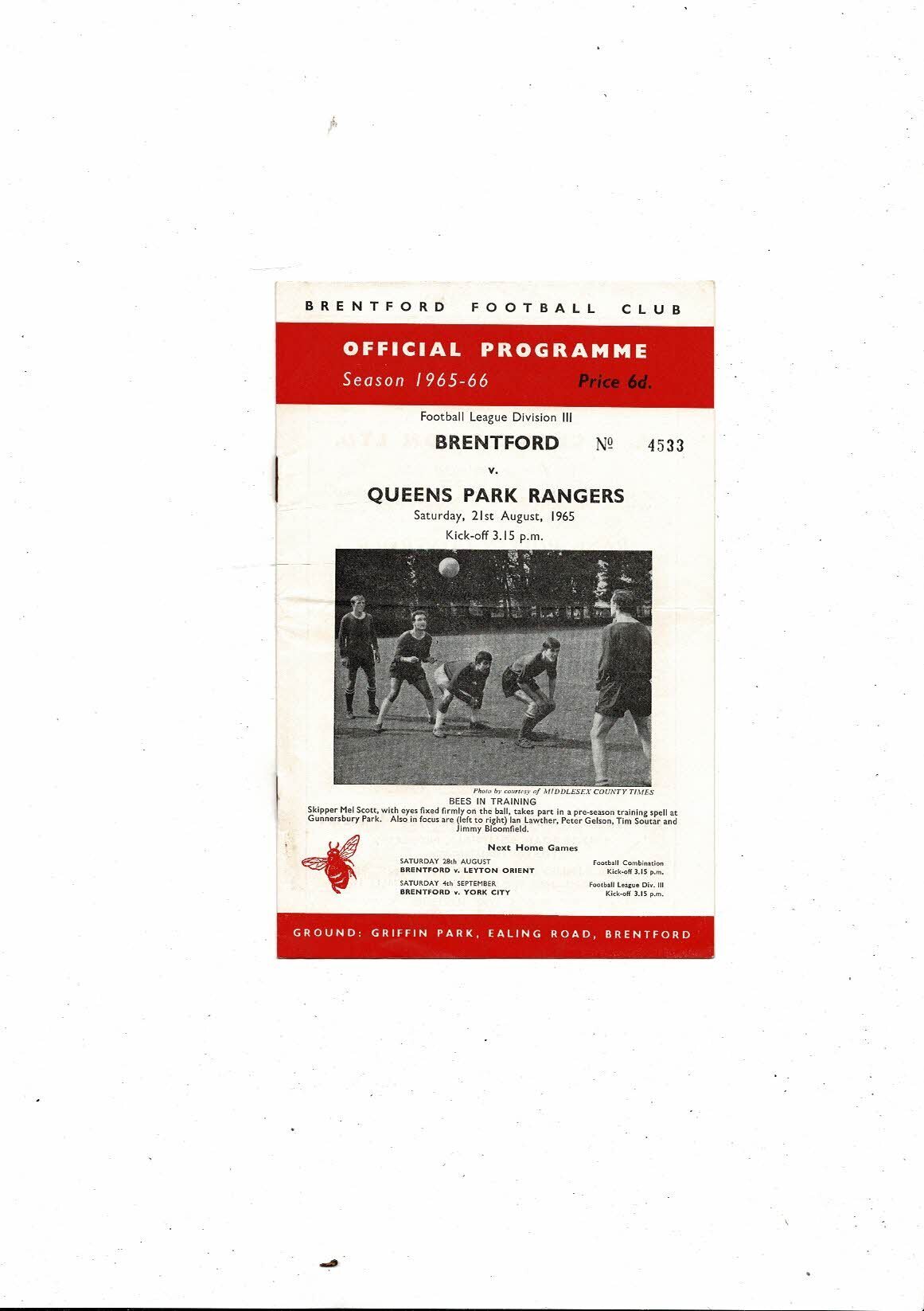 1965/66 Brentford v Queens Park Rangers Football Programme