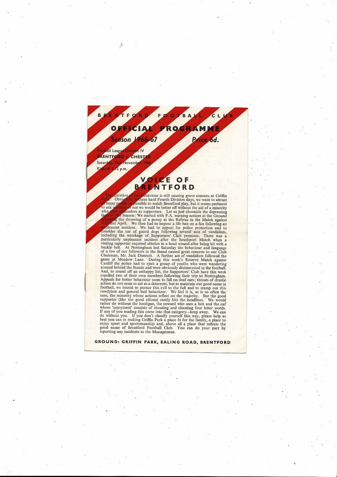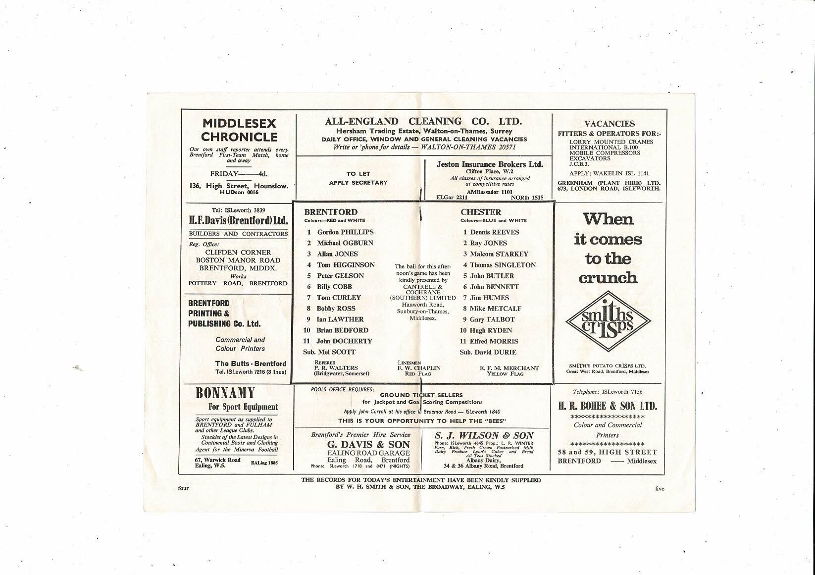 1966/67 Brentford v Chester City Football Programme