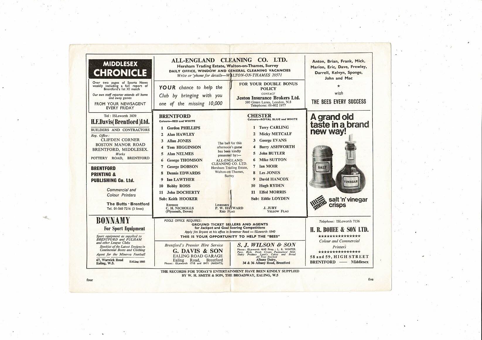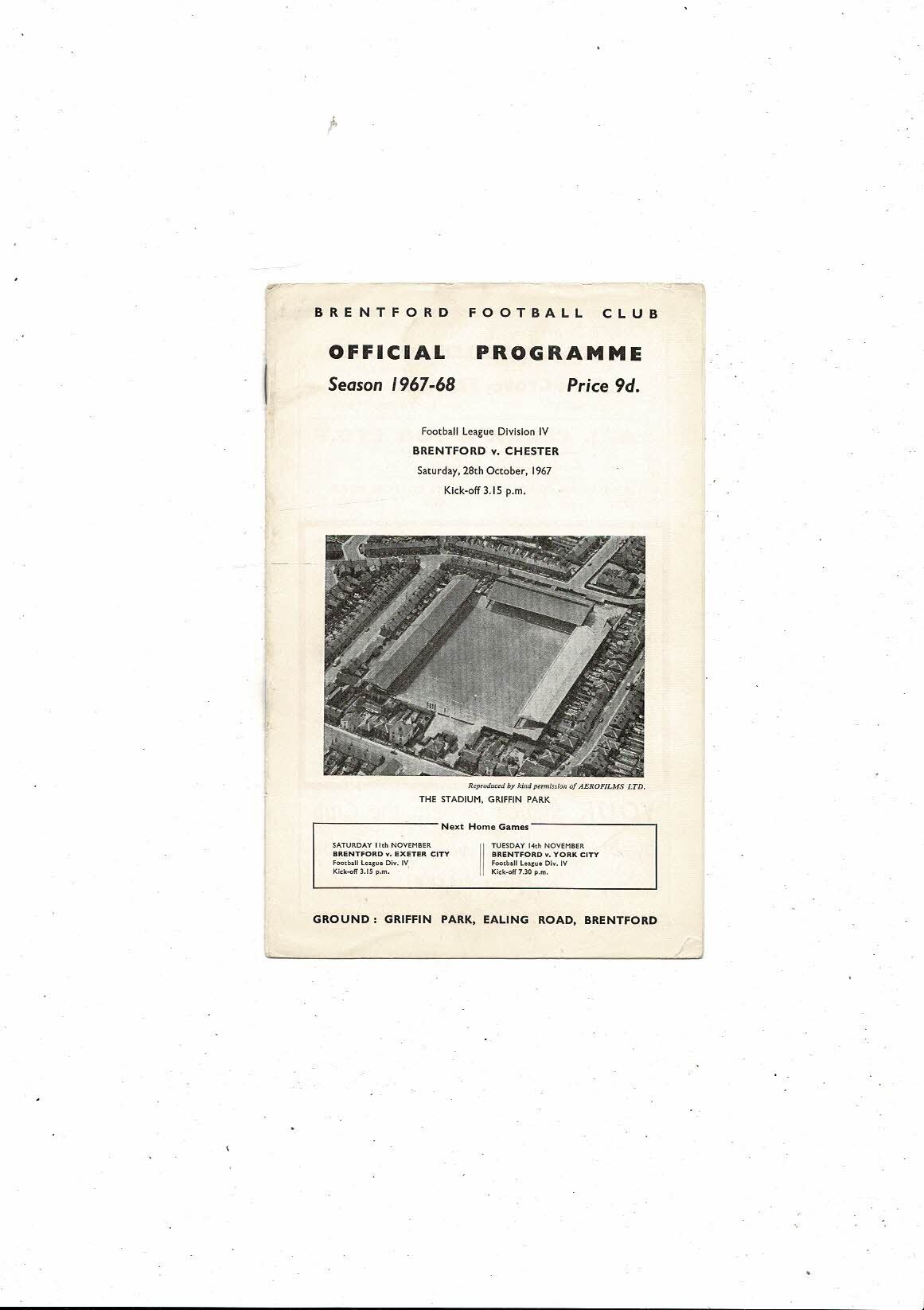 1967/68 Brentford v Chester City Football Programme