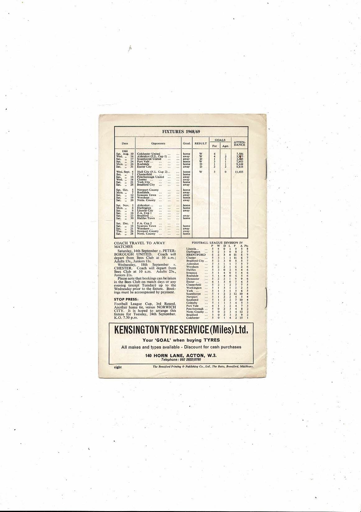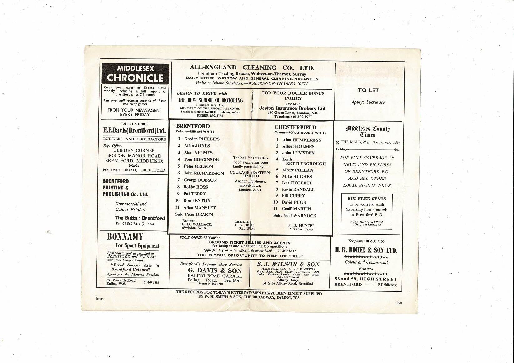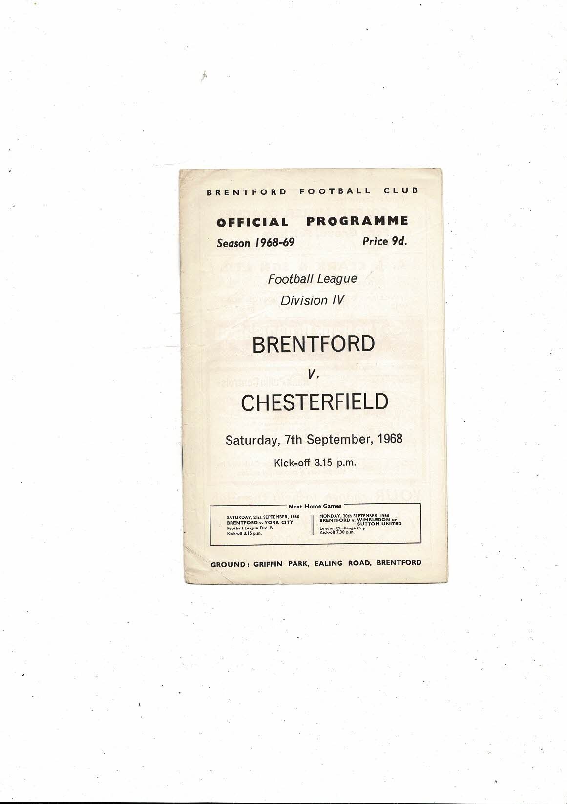 1968/69 Brentford v Chesterfield Football Programme