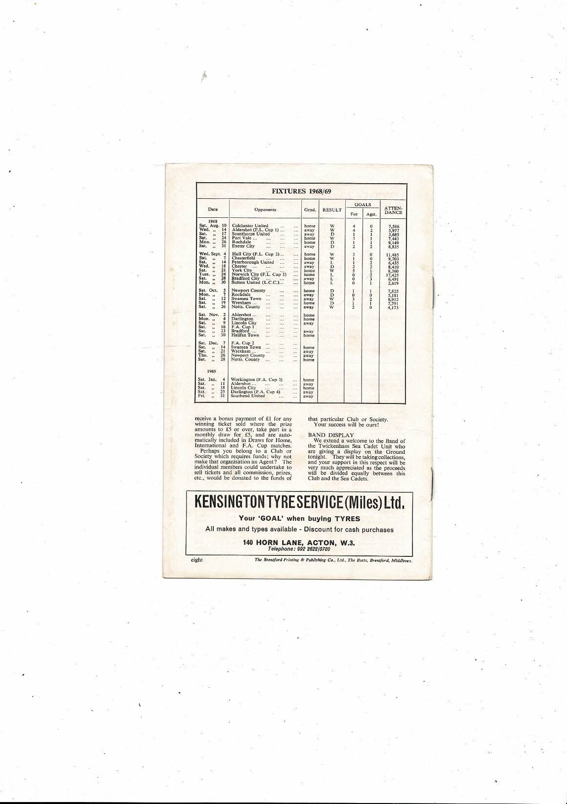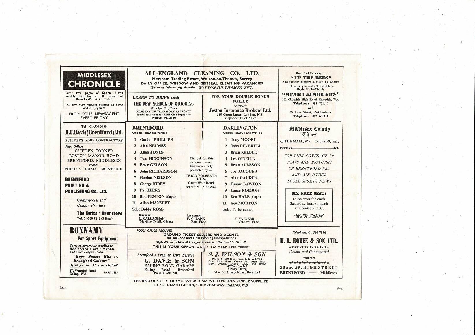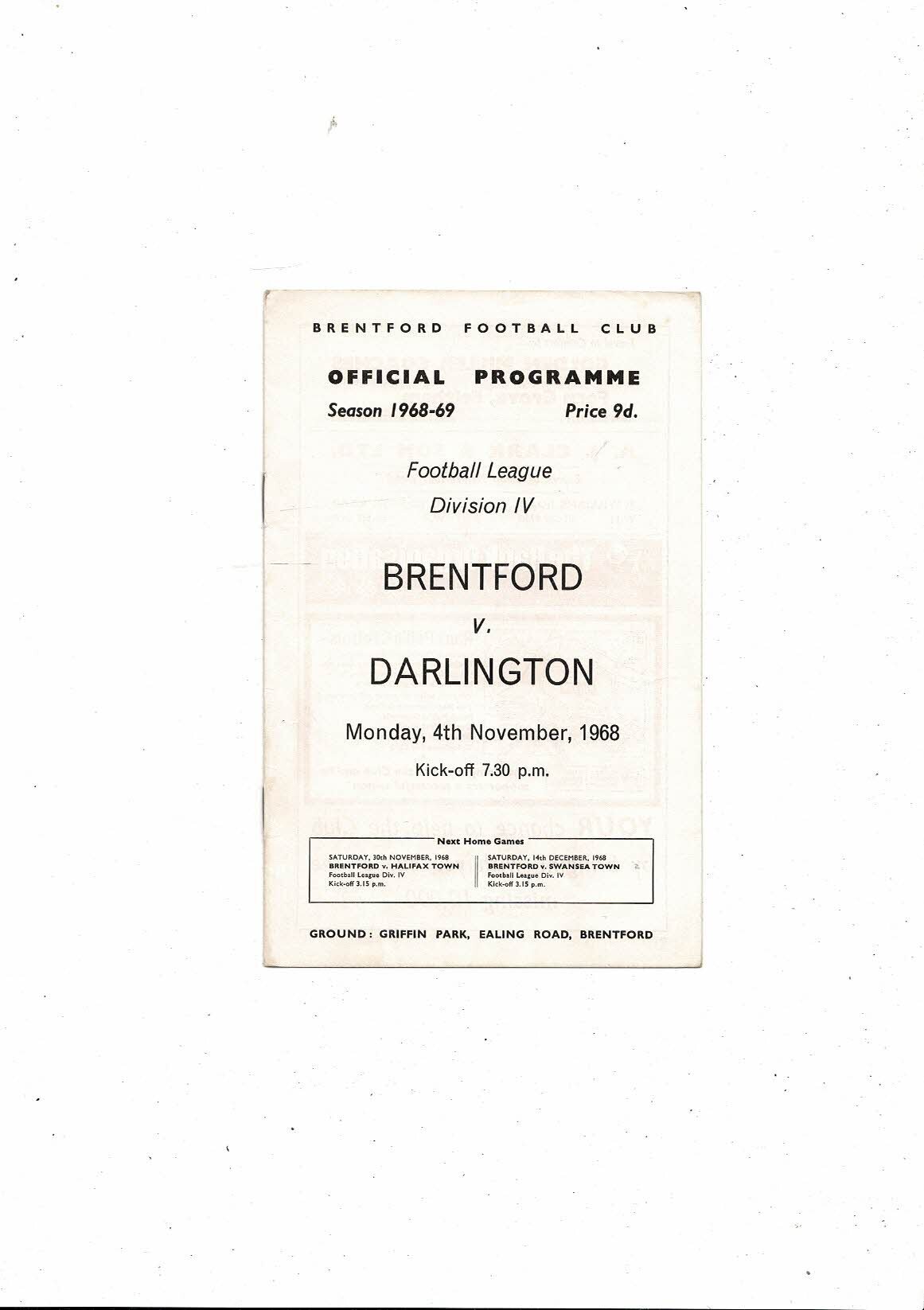 1968/69 Brentford v Darlington Football Programme