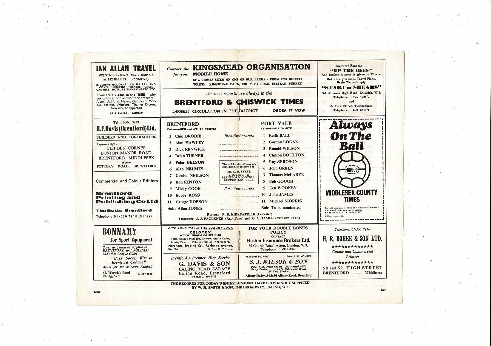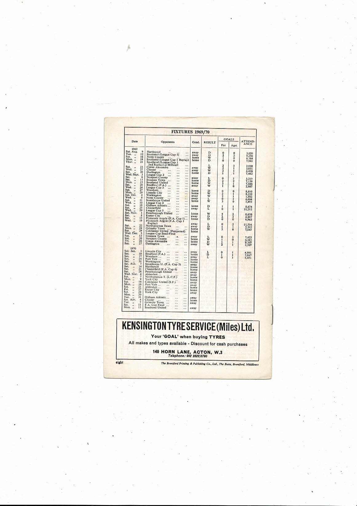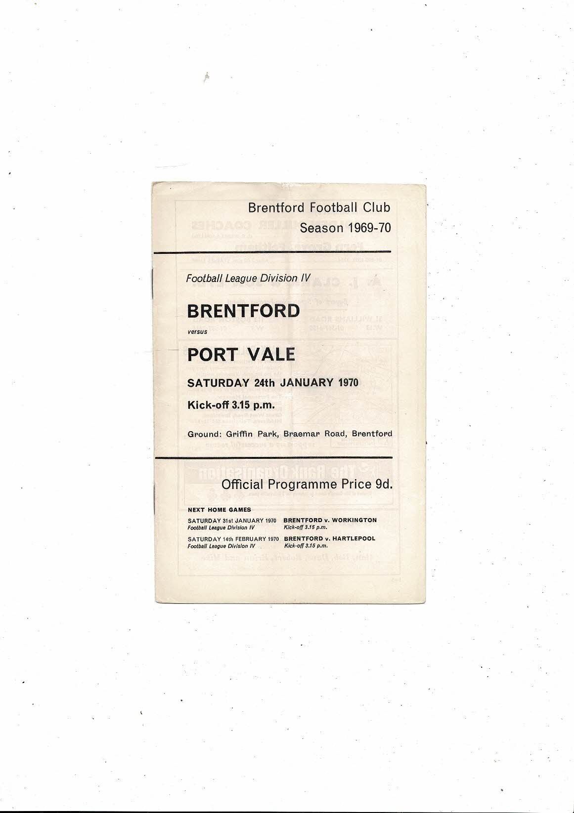 1969/70 Brentford v Port Vale Football Programme