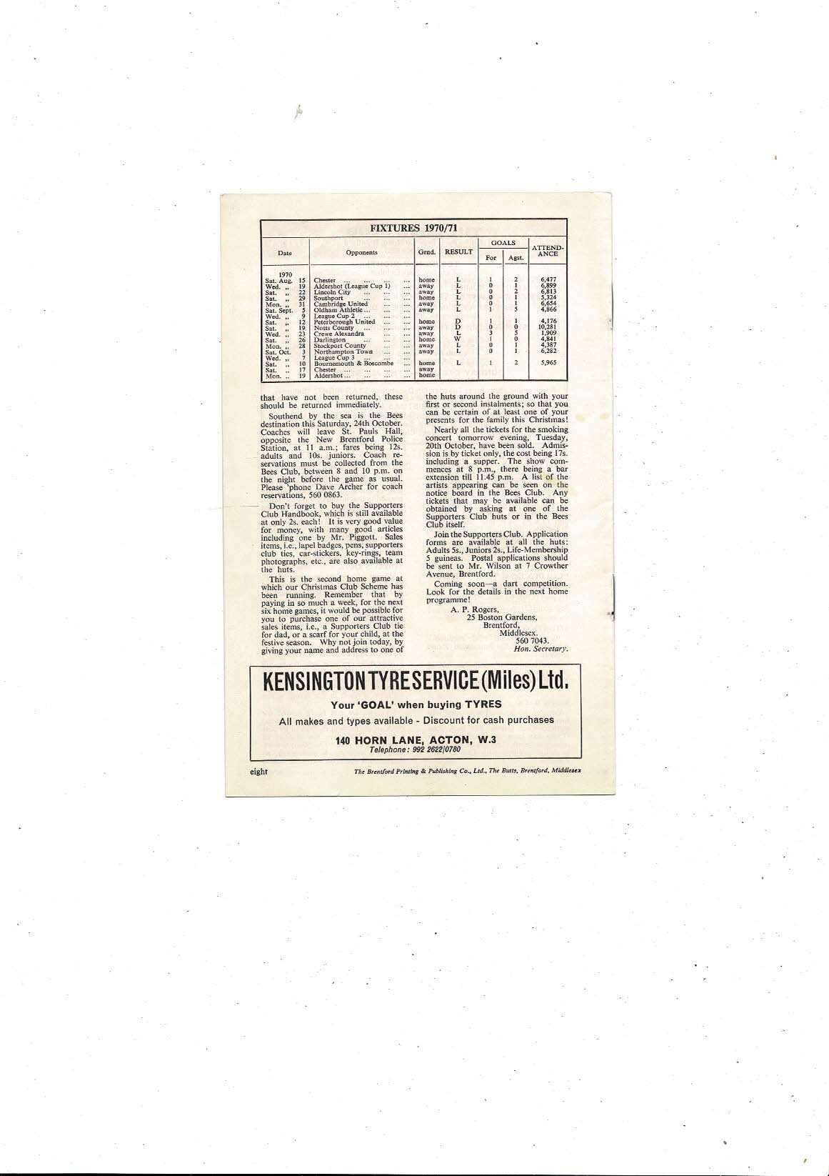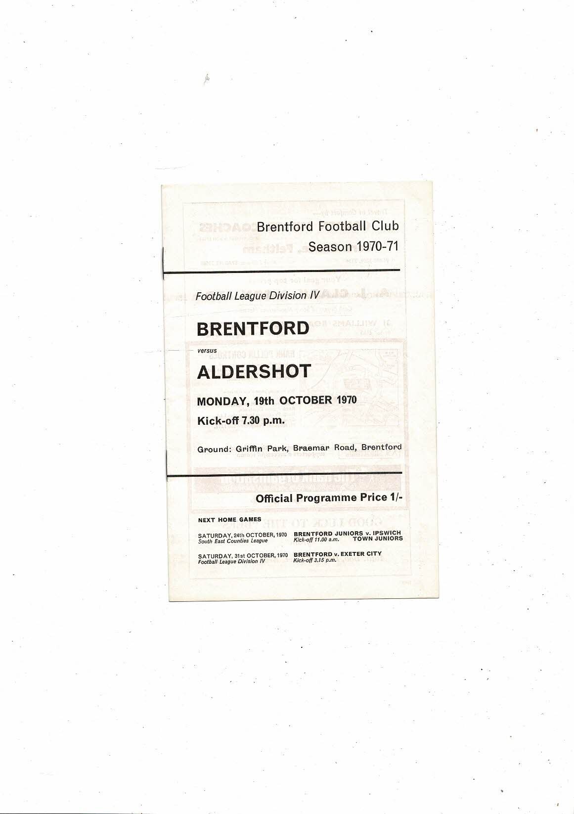 1970/71 Brentford v Aldershot Football Programme