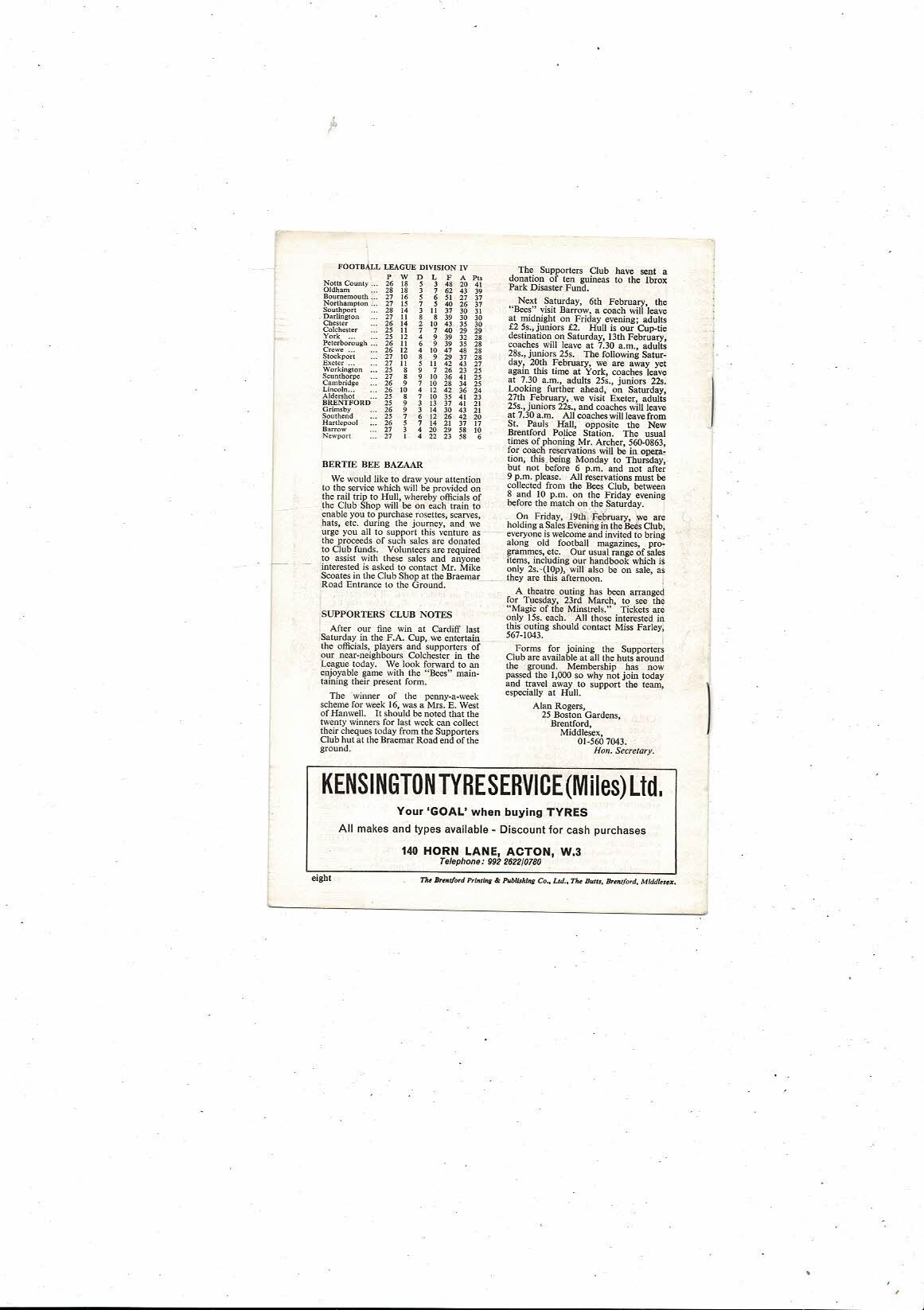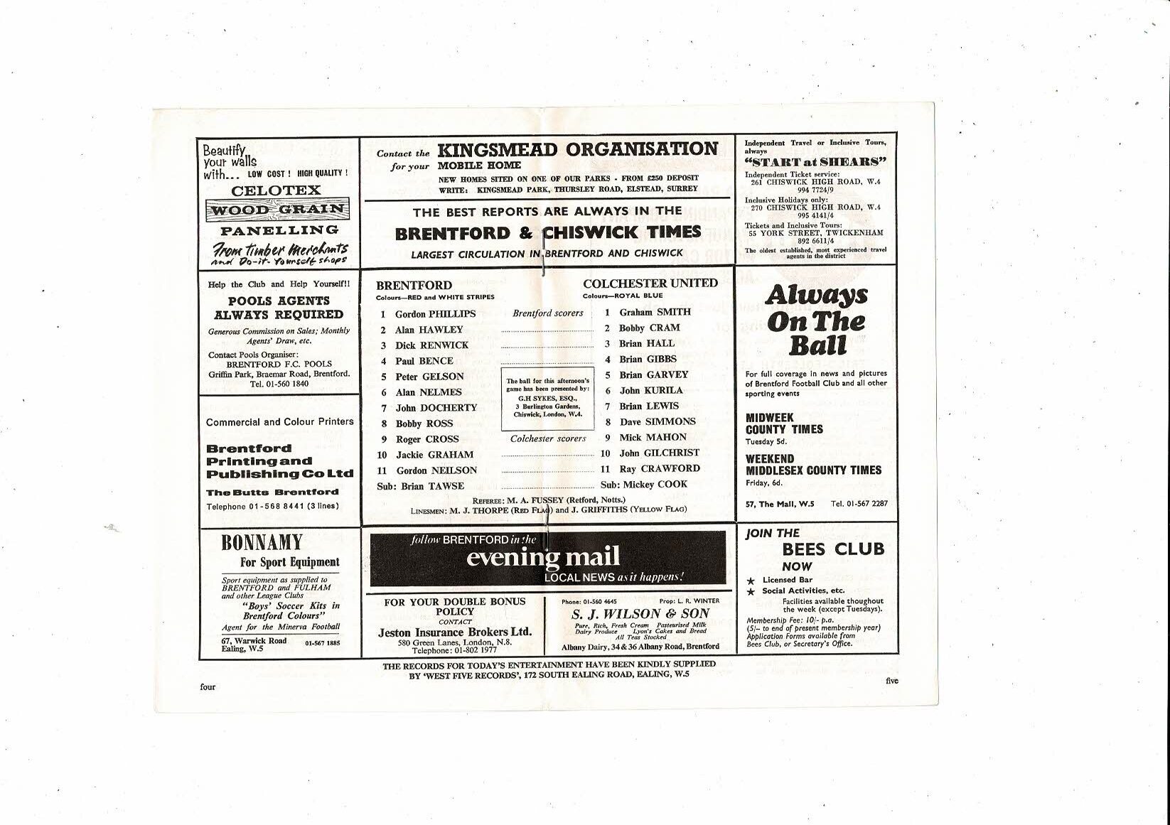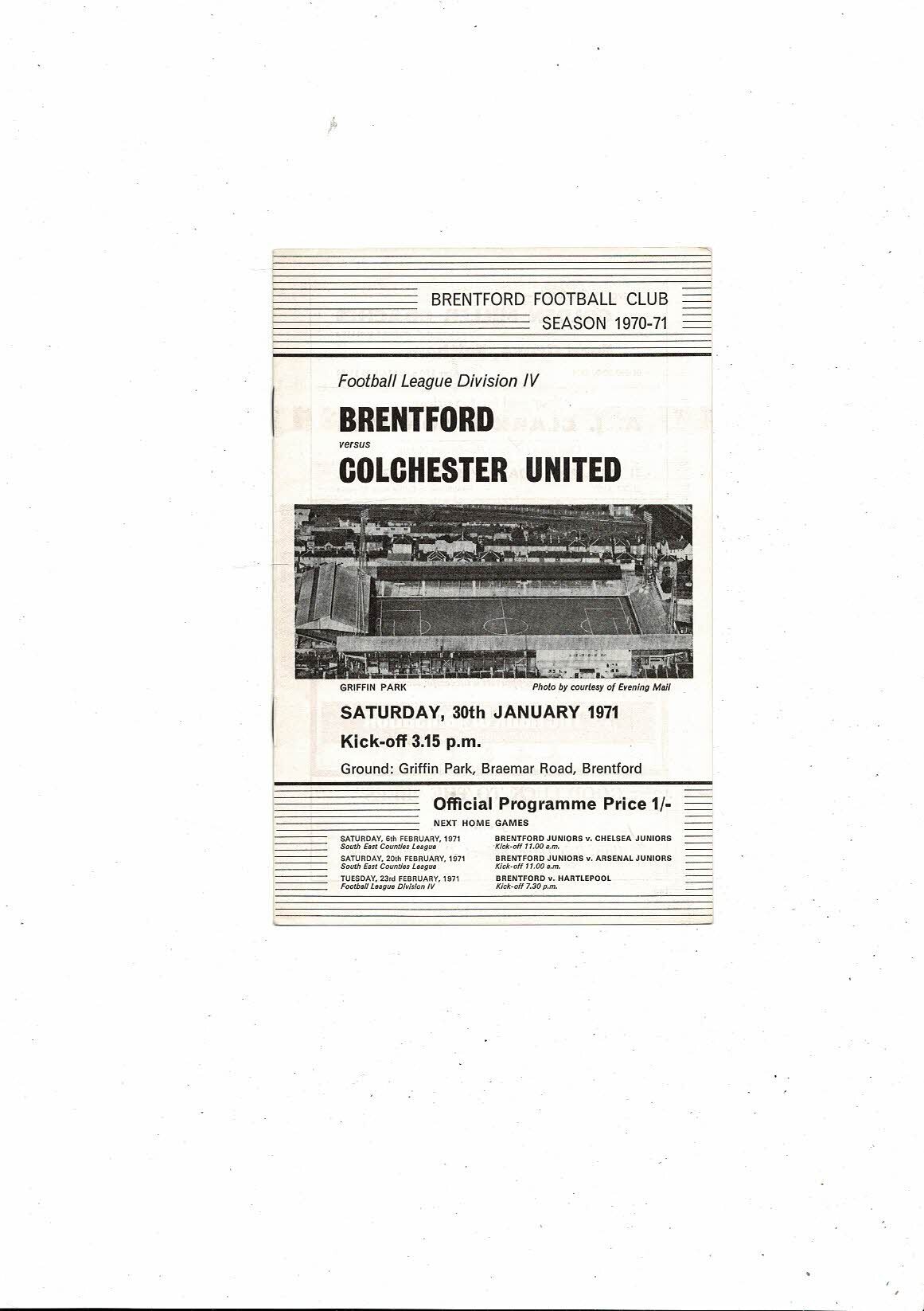 1970/71 Brentford v Colchester United Football Programme January