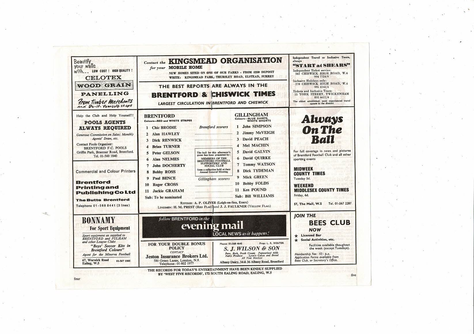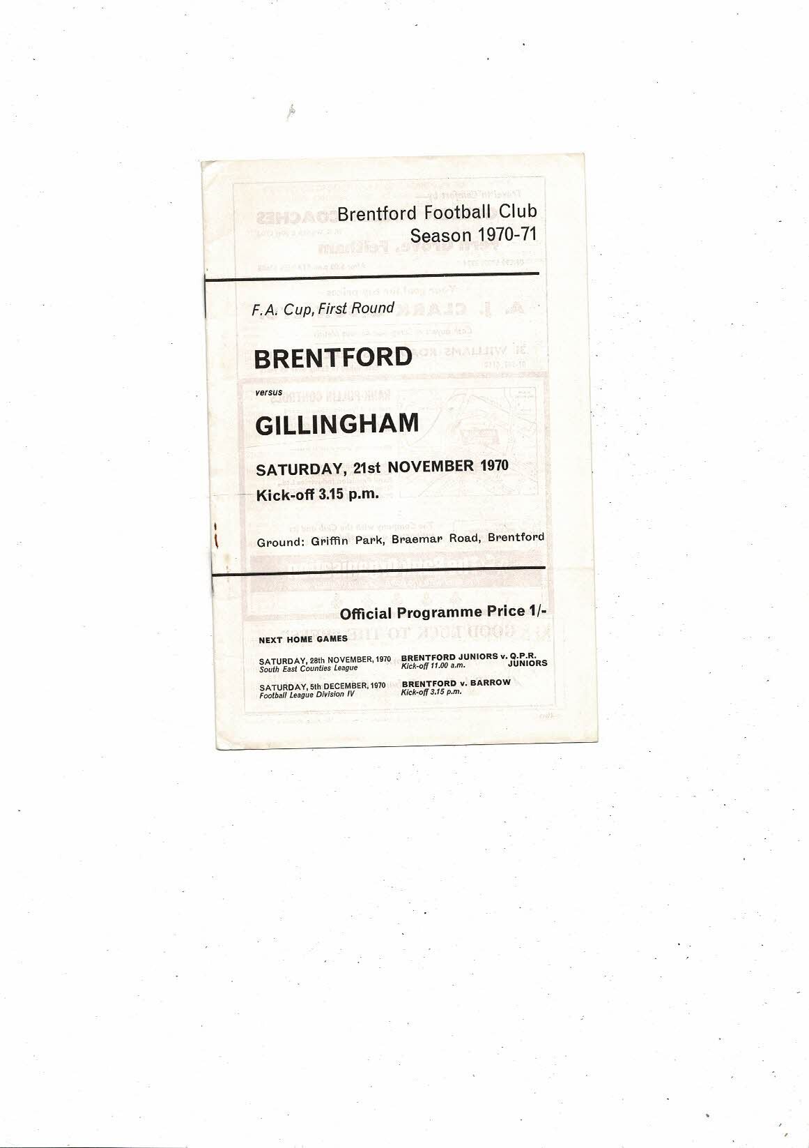 1970/71 Brentford v Gillingham FA Cup Football Programme