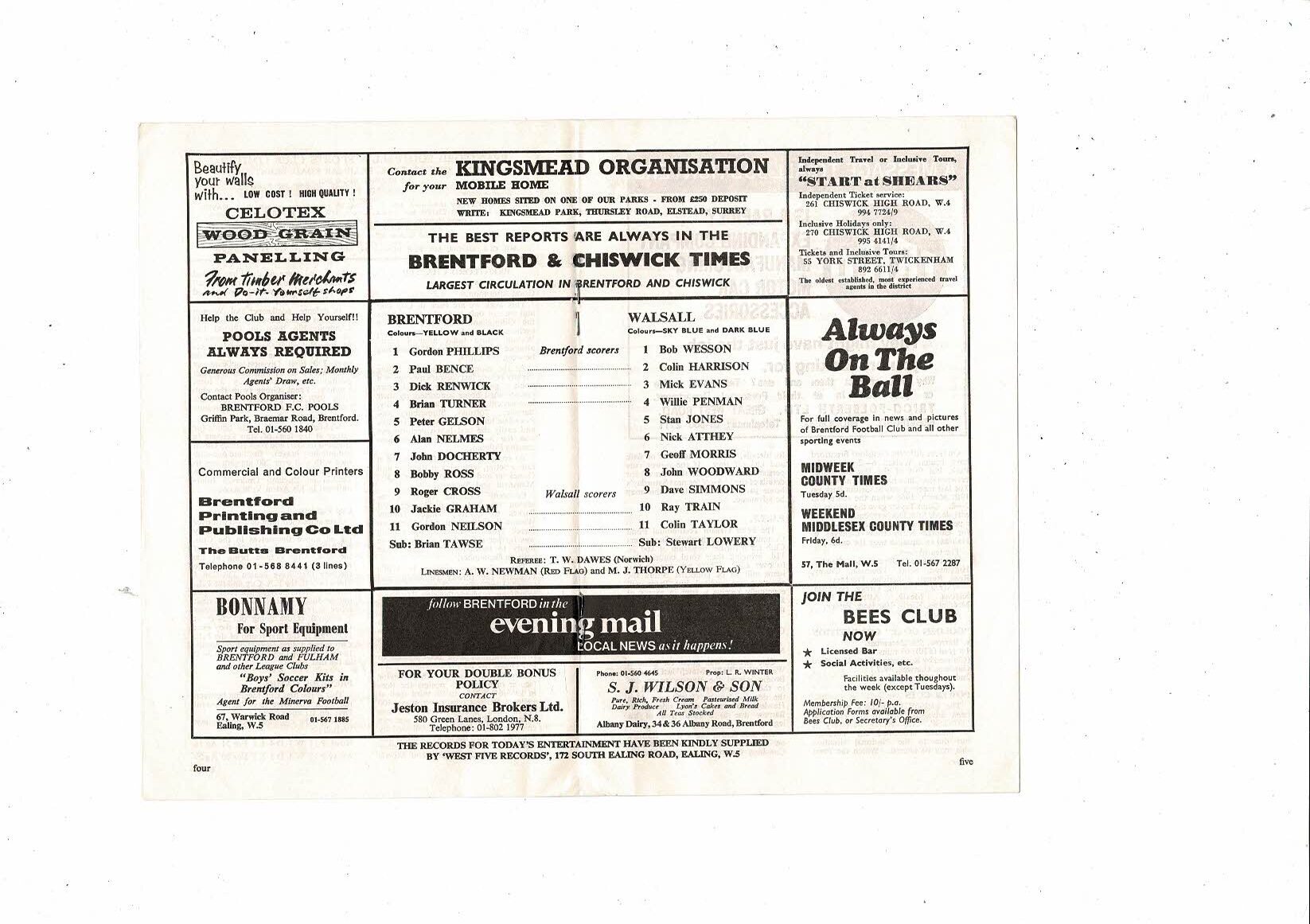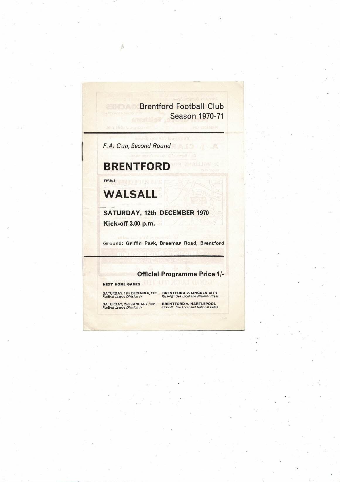 1970/71 Brentford v Walsall FA Cup Football Programme