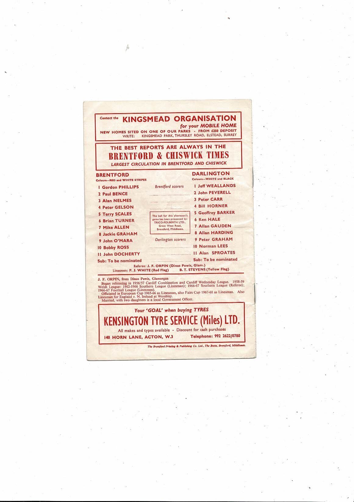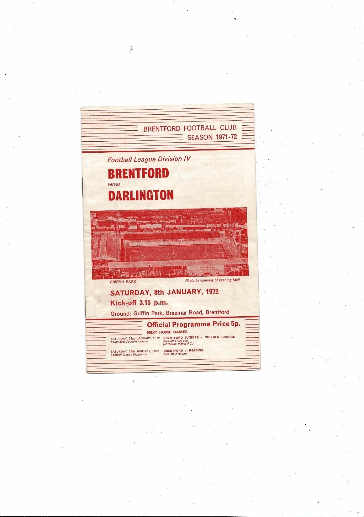 1971/72 Brentford v Darlington Football Programme