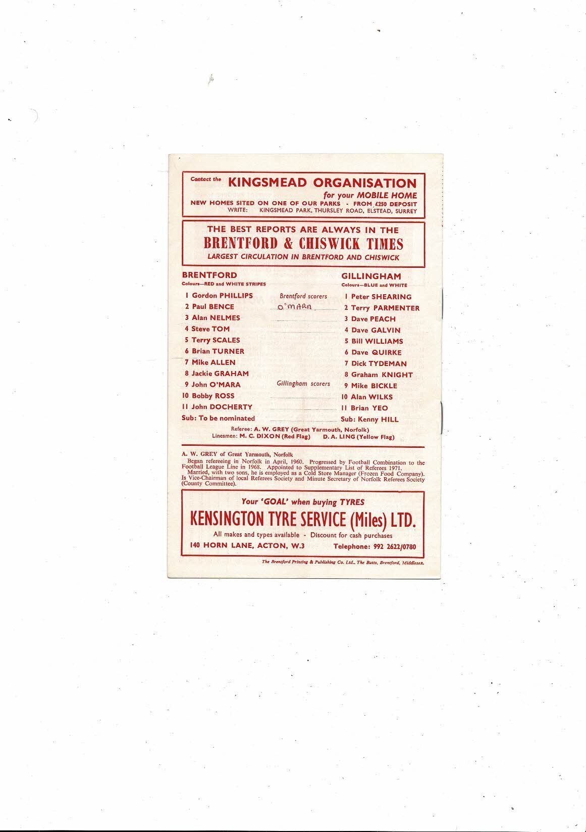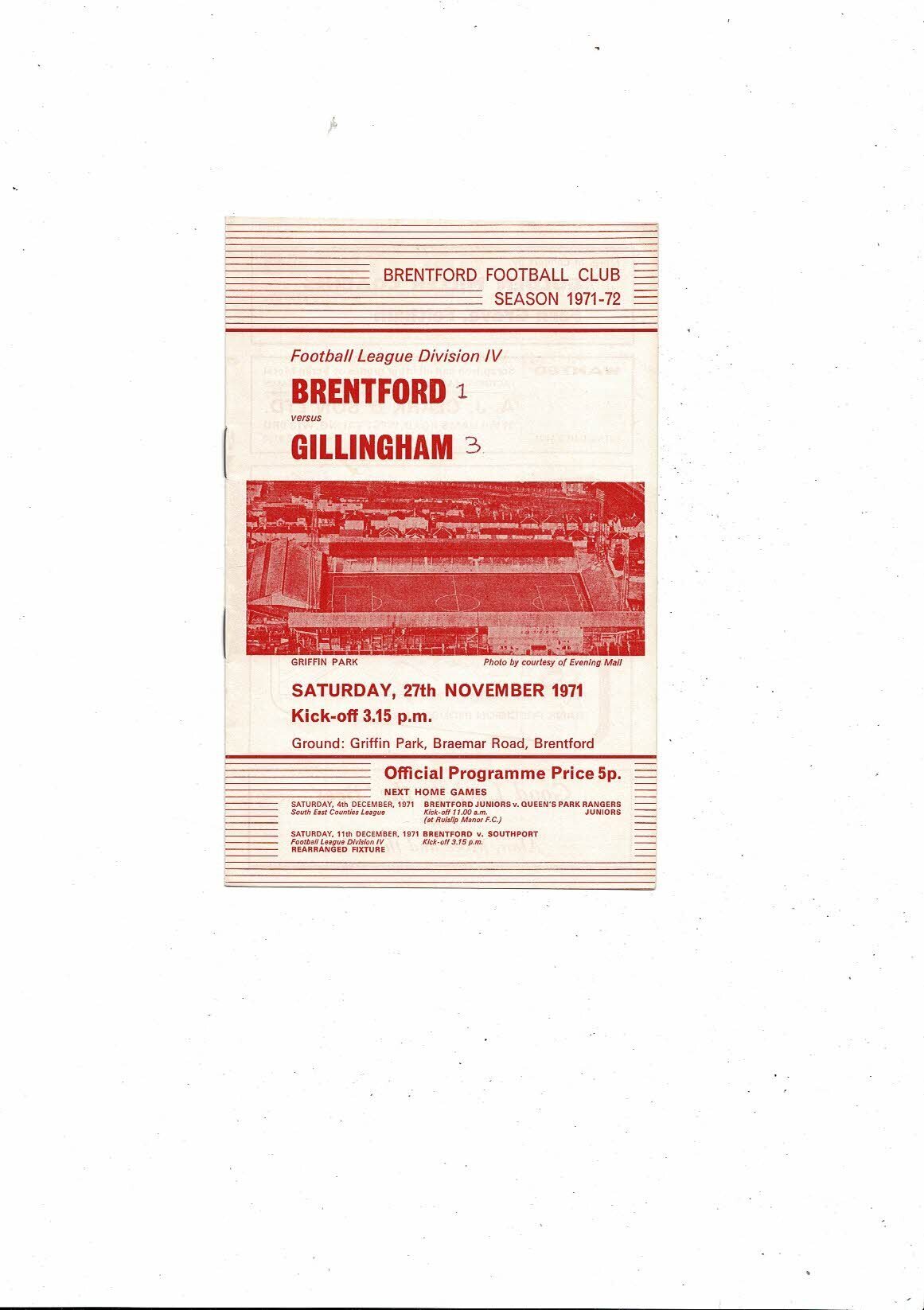 1971/72 Brentford v Gillingham Football Programme