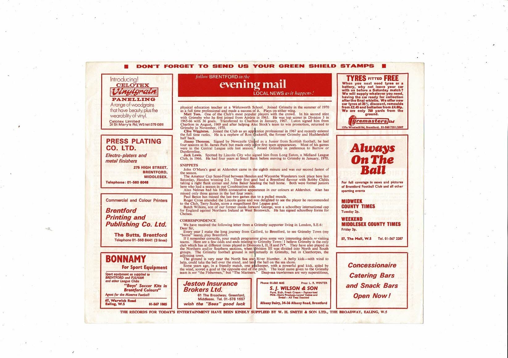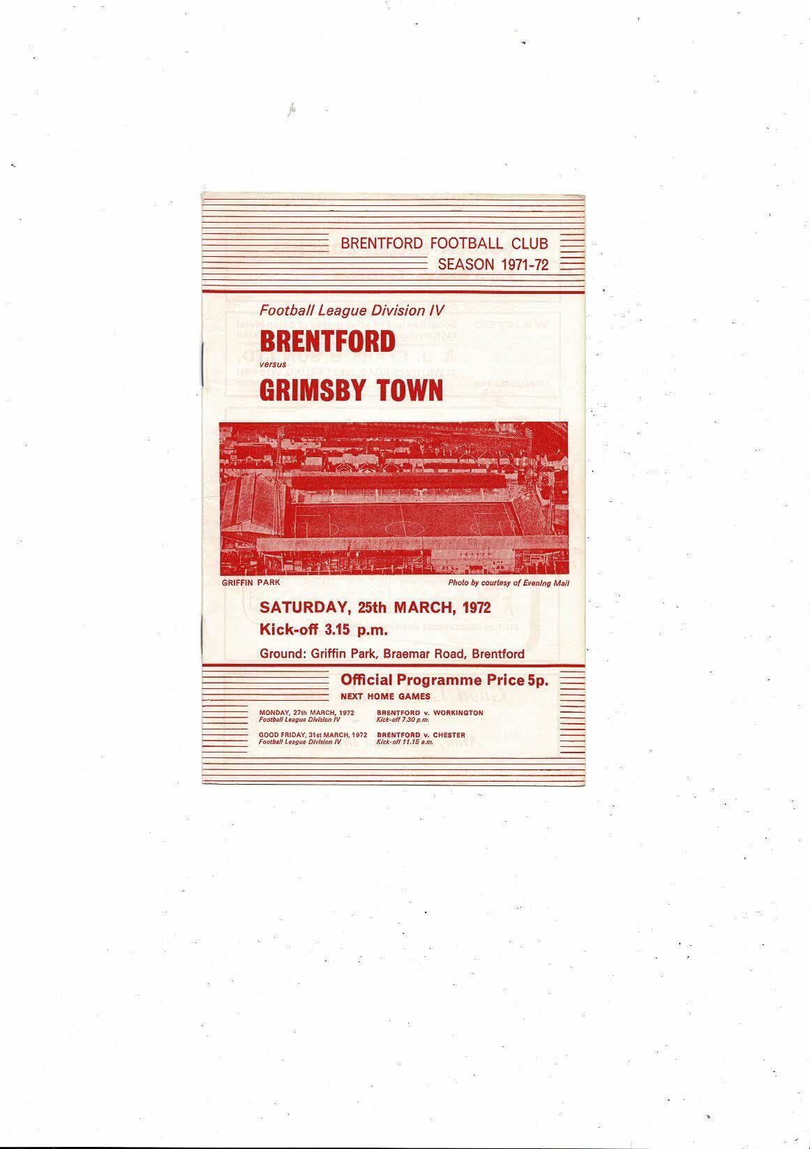 1971/72 Brentford v Grimsby Town Football Programme