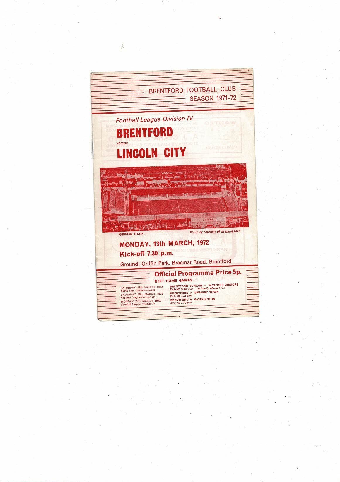 1971/72 Brentford v Lincoln City Football Programme