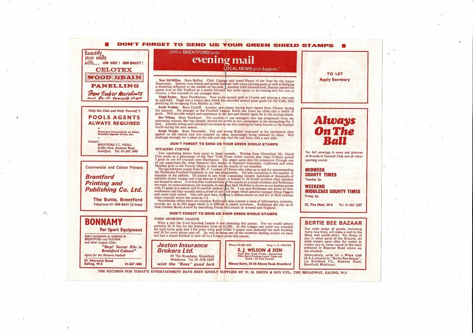 1971/72 Brentford v Stockport County Football Programme