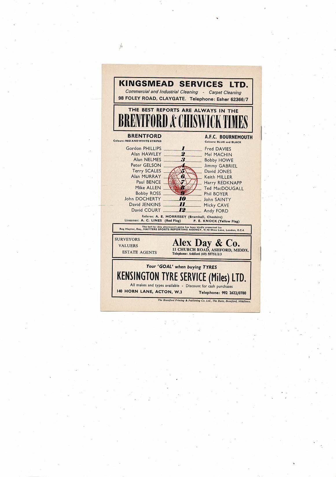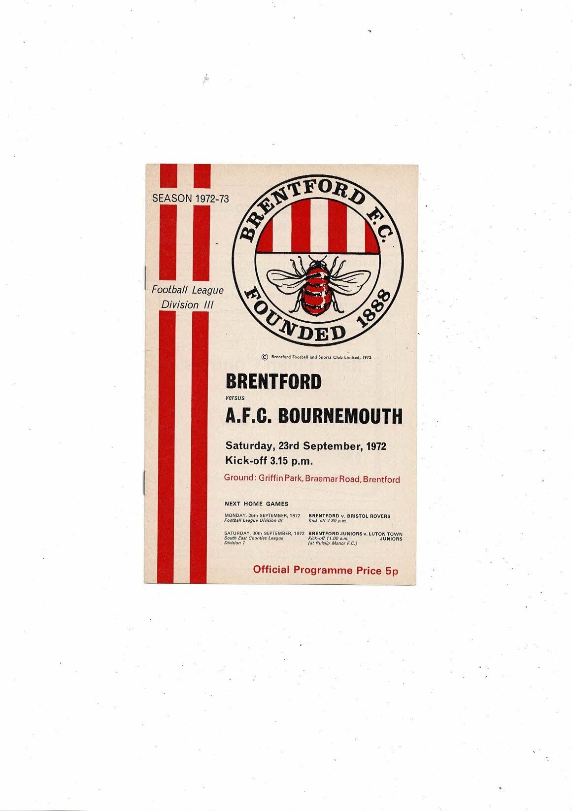 1972/73 Brentford v Bournemouth Football Programme