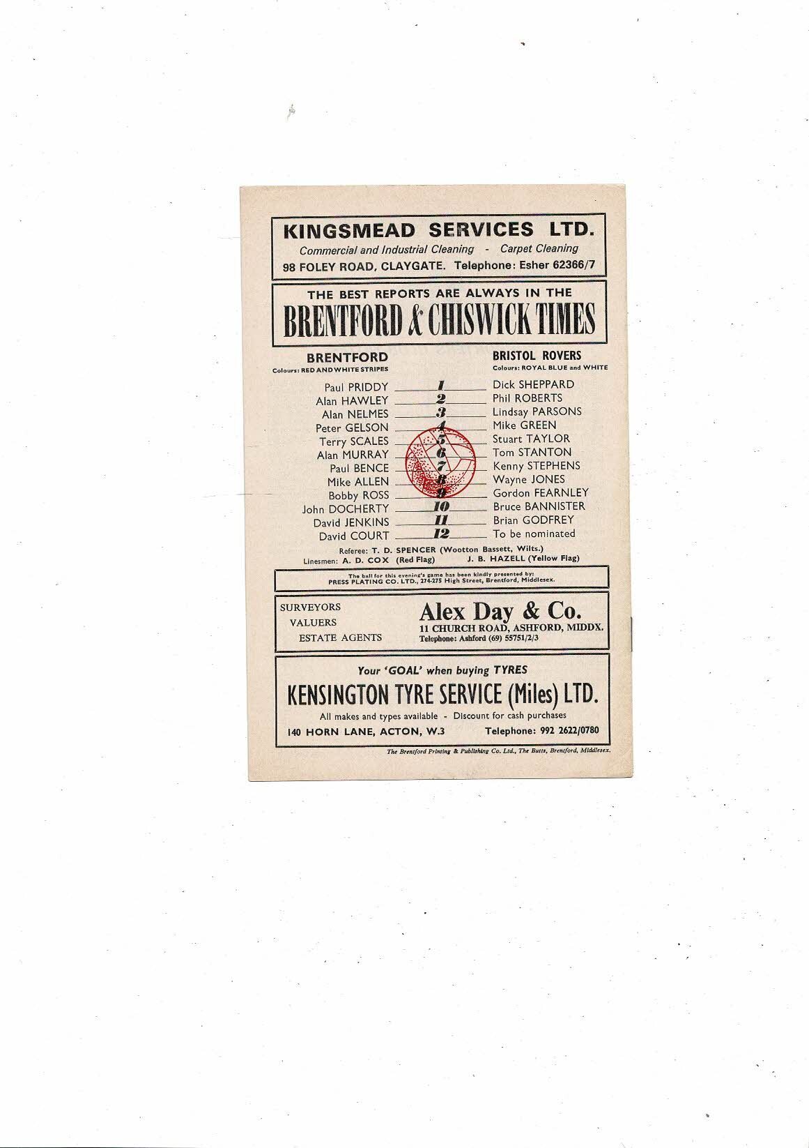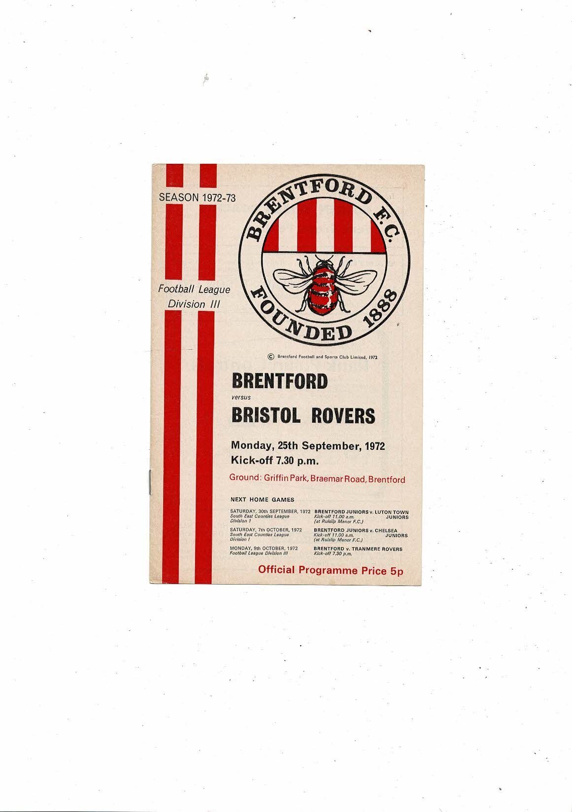 1972/73 Brentford v Bristol Rovers Football Programme