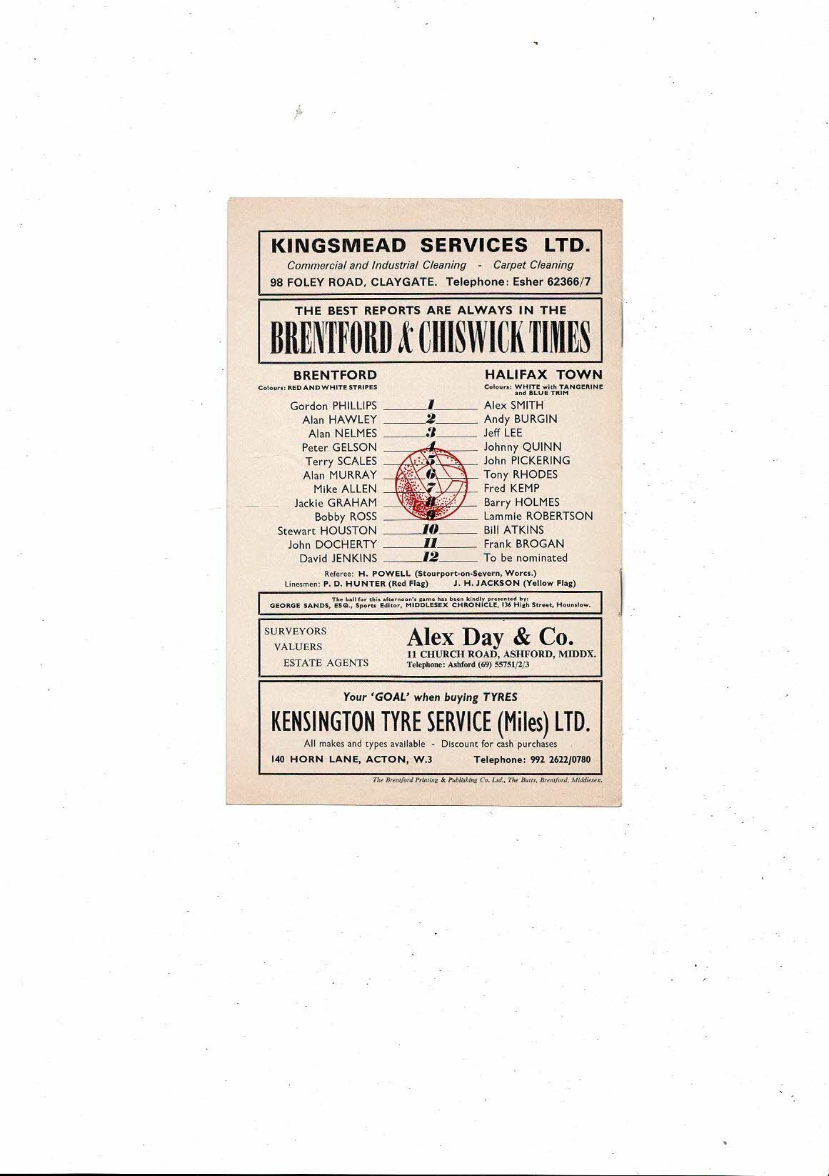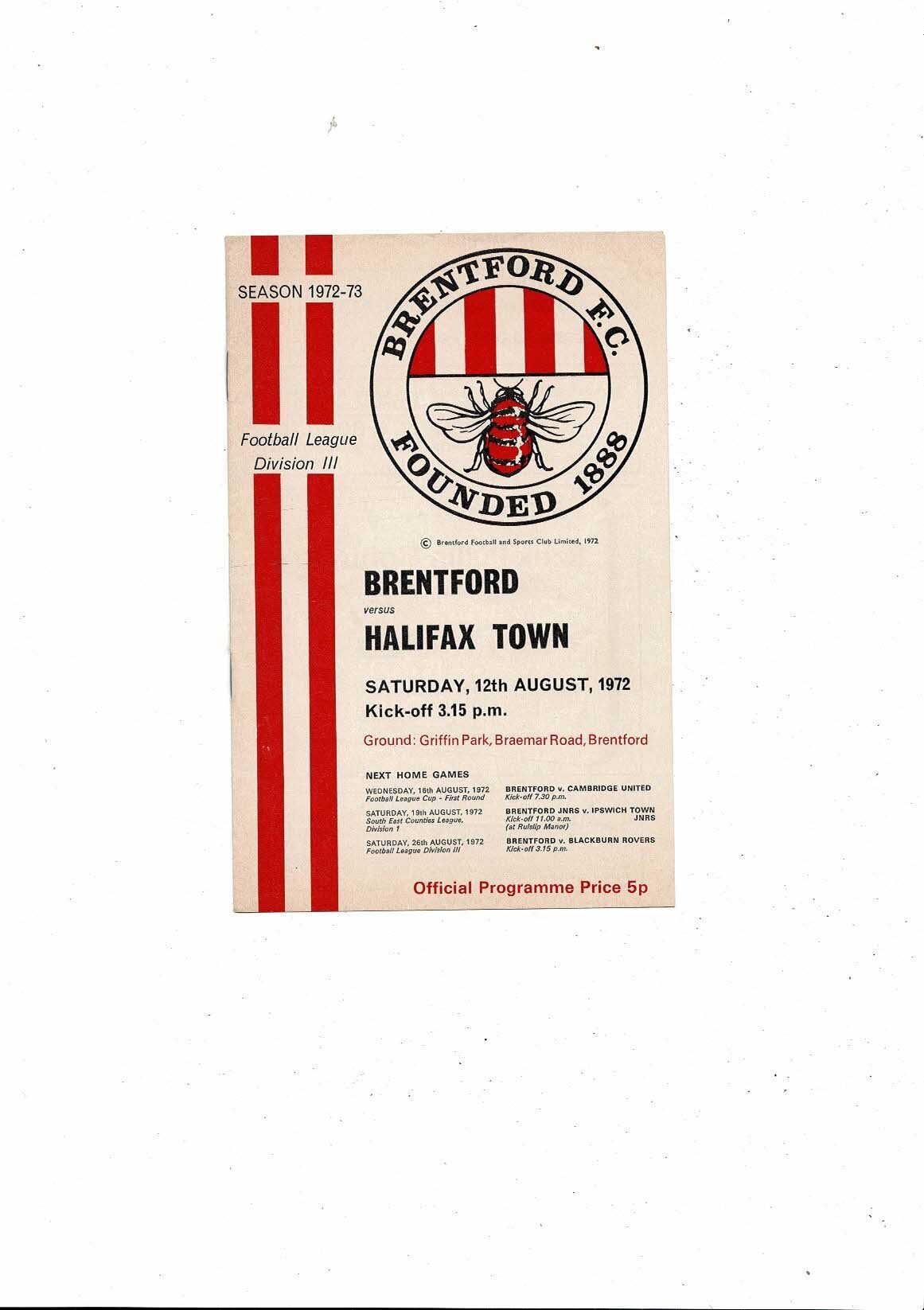 1972/73 Brentford v Halifax Town Football Programme